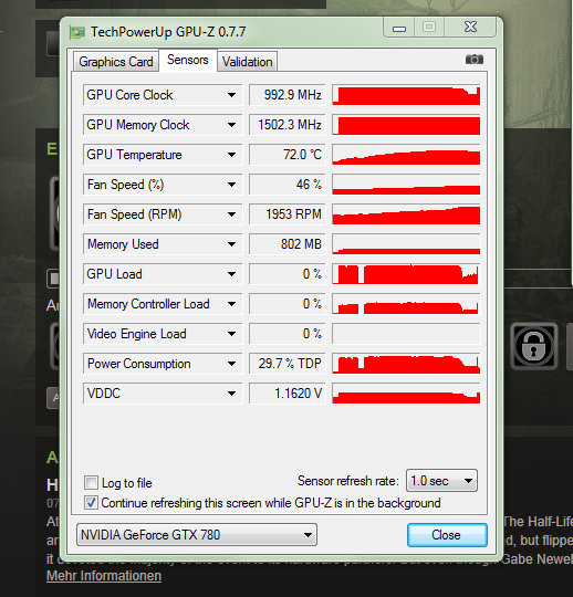 Hmmm schaut eigentlich nicht so aus als ob die Karte runtertaktet, aber relativ am Anfang des Graphen bricht der Gpu Load mal auf 0% ein, hattest du da einen Freeze ? Du kannst mal auf Gpu Temperatur klicken um dir den maximalen Wert den sie erreicht hat anzuzeigen, aber wenn ich den Graphen so anschaue sollten das keine 80°C sein.
