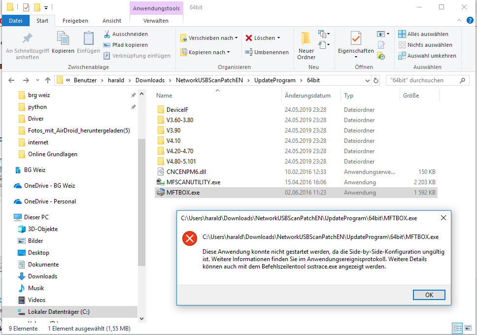 Ich habe versucht den MF34SCN.INF Treiber zu installieren. Dies hat aber nicht geholfen. Dies scheint auch nur ein Druck Treiber zu sein, da ich über diesen nur drucken kann, aber nicht einscannen.