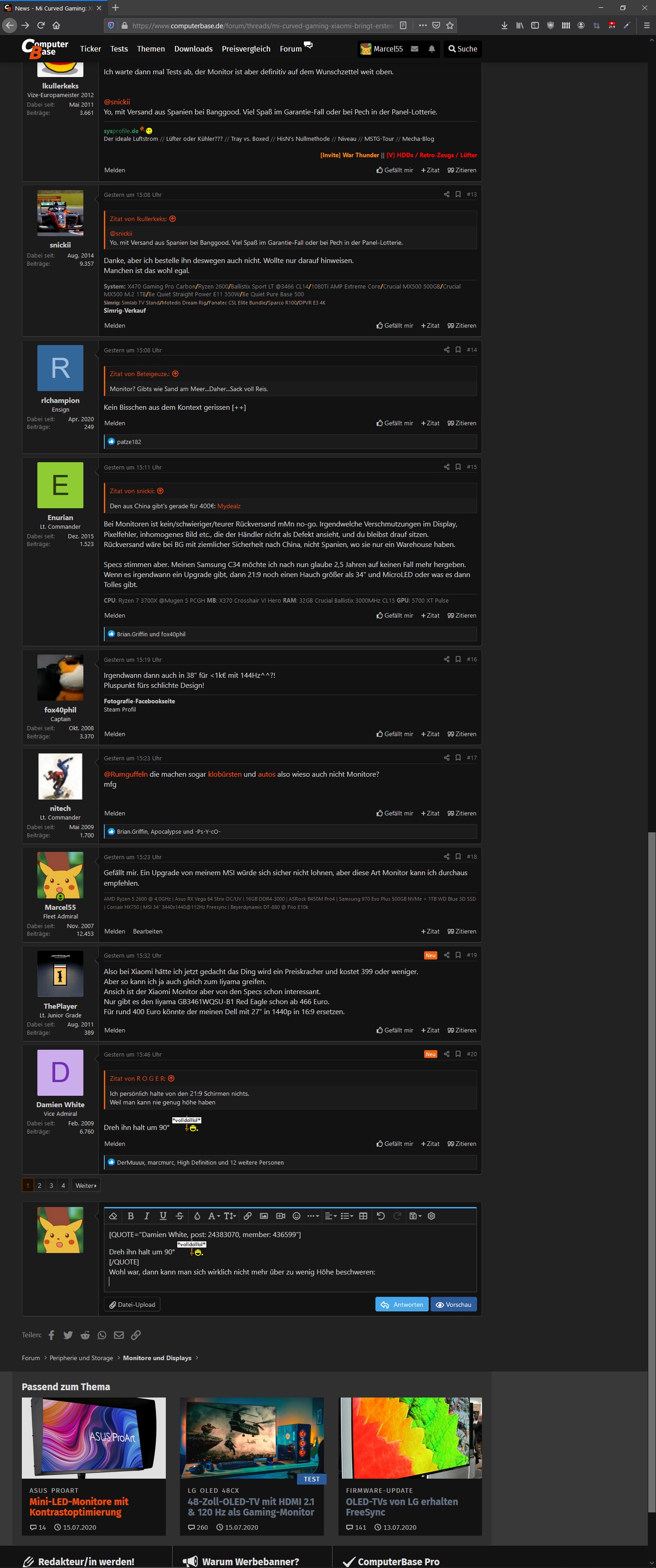 Bei einem etwa 70cm breiten Bildschirm kann ich mit 16:9 31,5" Diagonale mit 0,2735qm Fläche haben, bei 21:9 29" Diagonale mit 0,1965qm Fläche.
