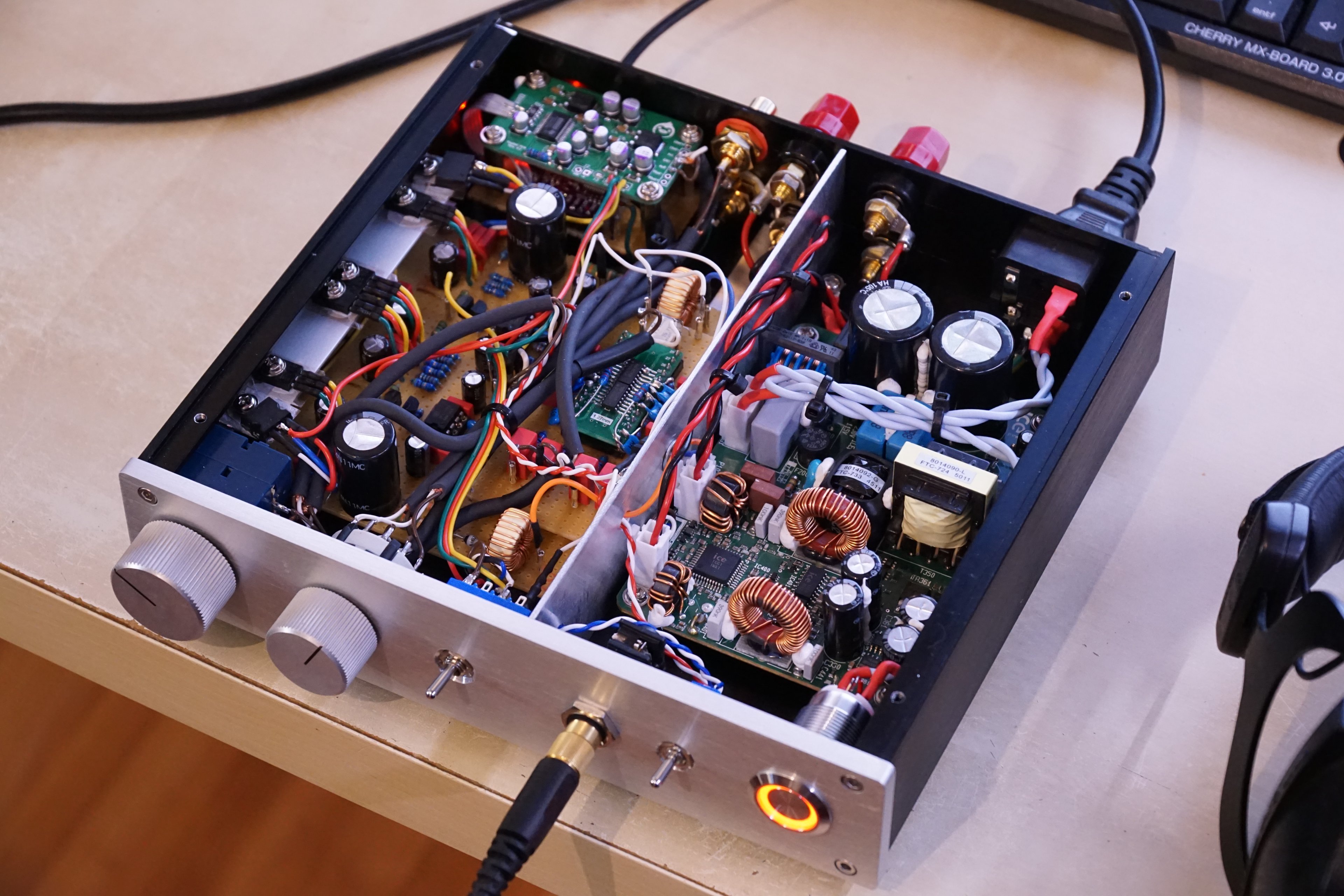 Daher hätte ich gerne ein Gerät an den ich Mikrofon, Kopfhörer und Boxen anschließen kann und bequem umschalten kann.