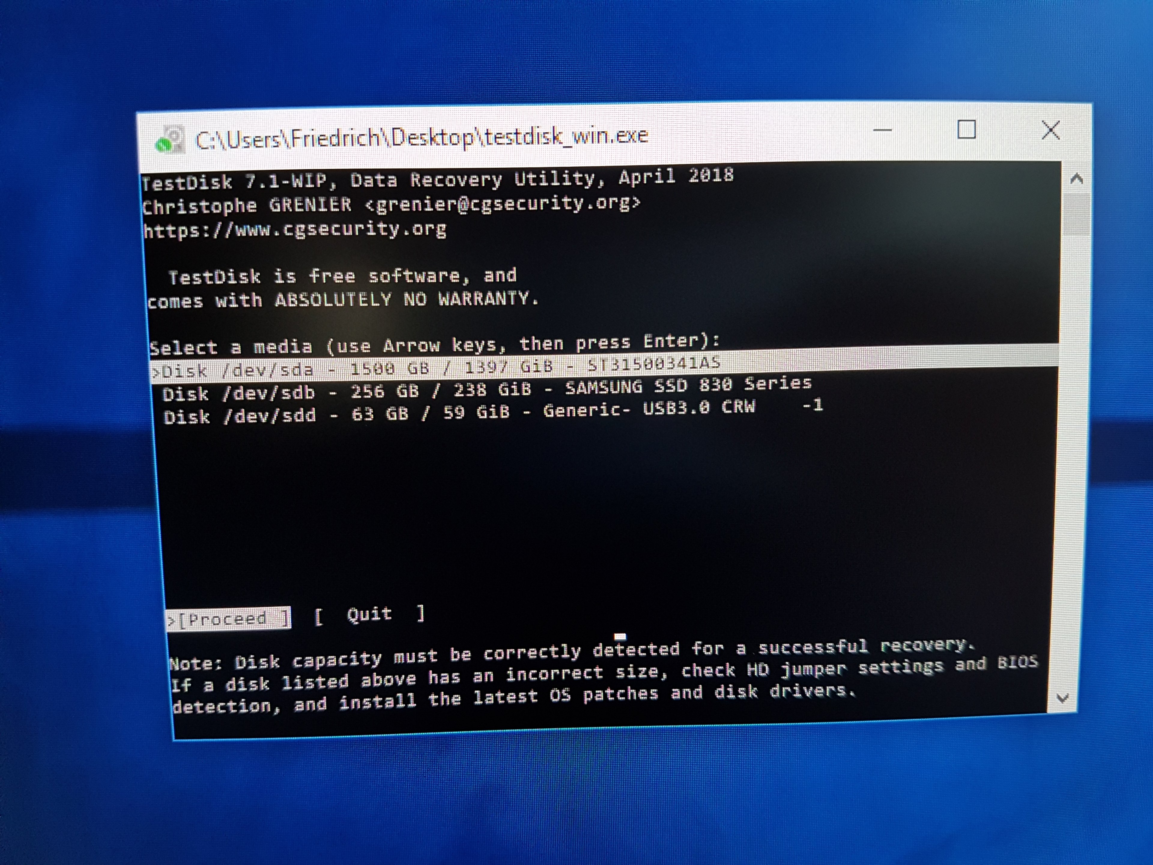 Lediglich Testdisk hat die Karte gefunden, weshalb einer Anleitung von GIGA gefolgt bin. (https://www.giga.de/downloads/testd...rstellen-daten-selber-reparieren-und-sichern/)