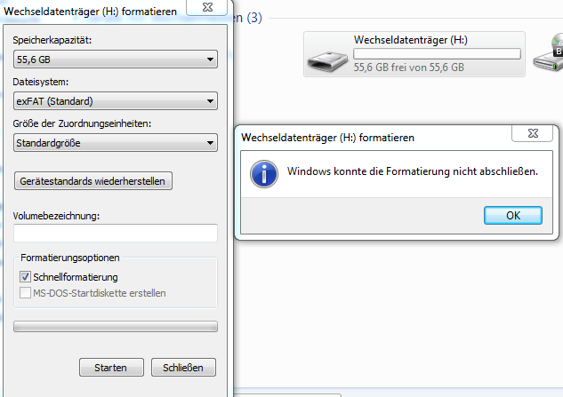 Jetzt fehlen mir ca. 4GB und hab einige Probleme wie z.B. unter Windows kann die SD nicht formatiert werden.