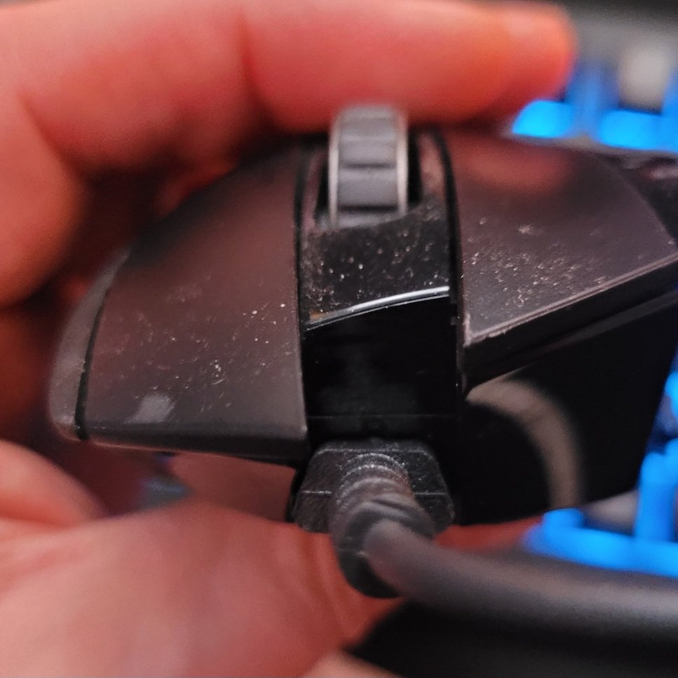 Bislang habe ich nichts passendes gefunden, da der Micro USB Eingang an der Mouse eckig ist und man selbst ein abgerundetes Kabel nicht anschließen kann.