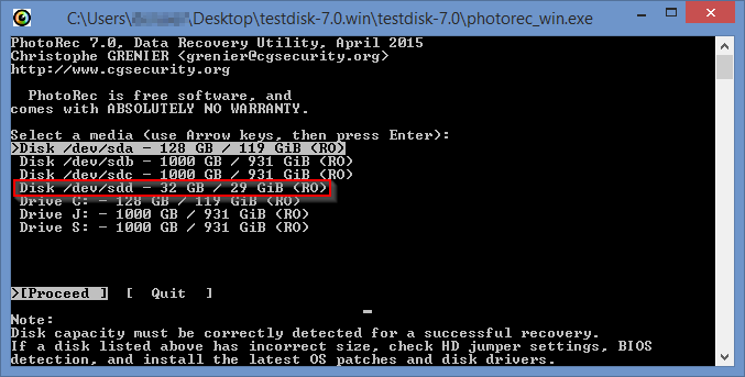 Habe mir Testdisk/Photorec 7.1 runtergeladen.