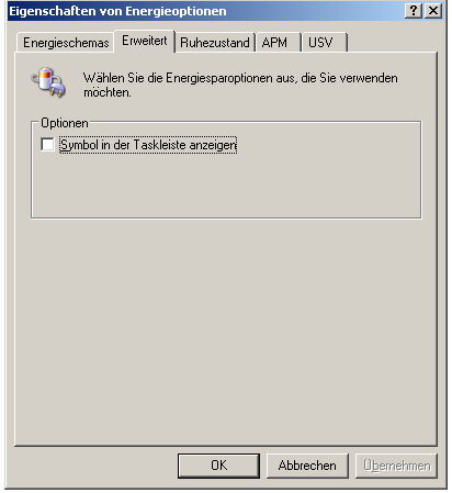 Schalte ich APM über XP ab, verschwindet die doofe Batterie, aber der PC muss manuell abgeschalten werden ("Sie können jetzt den PC ausschalten").