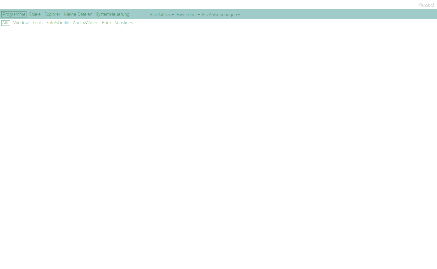 Die angezeigten Einträge kann man favorisieren, sodass für den favorisierten Eintrag eine Verknüpfung im entsprechen Favorit-Drop-Down-Menü erstellt wird. Dies würde eine noch schnellere Navigation ermöglichen. Je nachdem, ob man einen Ordner, ein Spiel oder ein Programm favorisiert hat, erscheint dies im entsprechenden Drop-Down-Menü, wie gesagt. Um die Navigation noch schneller zu machen, unterstützt die Oberfläche auch TabbedBrowsing. Wenn man mit Mausrad auf ein Haupt-/Untermenü klickt, wird dieses in einem neuen Tab geöffnet. Die Tab-Leiste befindet sich am obersten Rand des Bildschirms. Einfach so, wie man es schon aus modernen Browsern gewohnt ist.