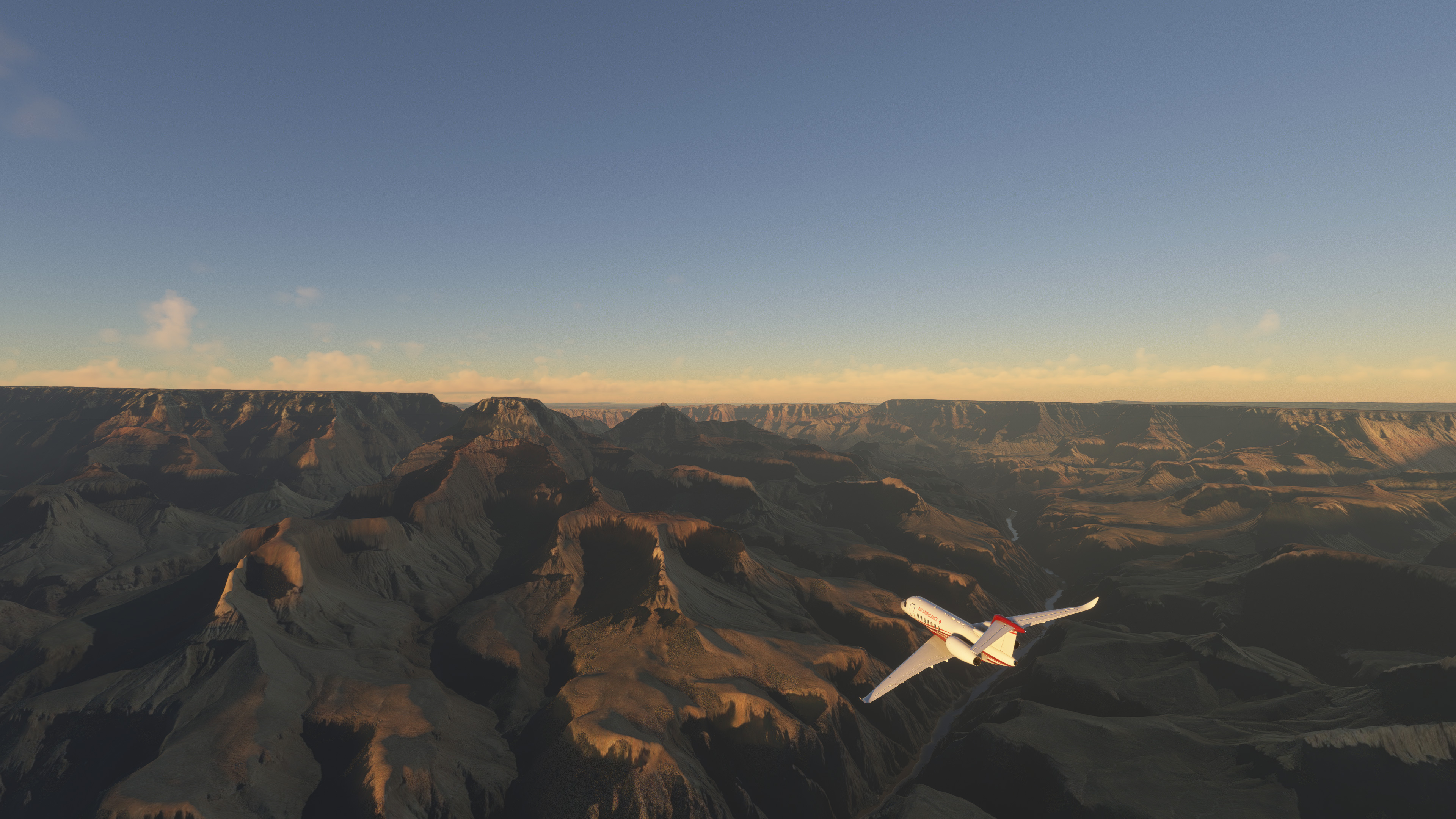 So schlecht, wie du hier aus dem Grand Canyon zeigst, ist es bei Gott nicht. Ja, stellenweise ist das darunterliegende DEM wohl zu grob und die Texturen nicht knackig, ich verwende zB für AT eines, was auf 10 m Auflösung vorhanden ist, und schon das bringt sehr viel Detailgrad. Höhere Auflösung der Bodenkarten + DEM macht schon sehr viel aus (und vor allem das richtige Licht, denn selten sehen so karge Landschaften in harscher Sonne "gut" aus). 😉