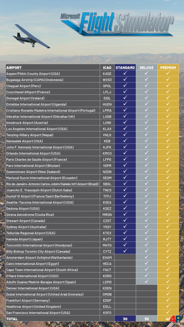 - The Premium Deluxe Edition ($119.99 USD) includes everything from Microsoft Flight Simulator Standard Edition plus 10 additional highly accurate planes with unique flight models and 10 additional handcrafted international airports.