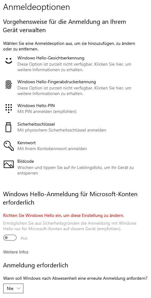 Ich möchte auch keinen PIN festlegen für die Anmeldung. Dazu fordert mich Windows jetzt auch jedes mal auf.