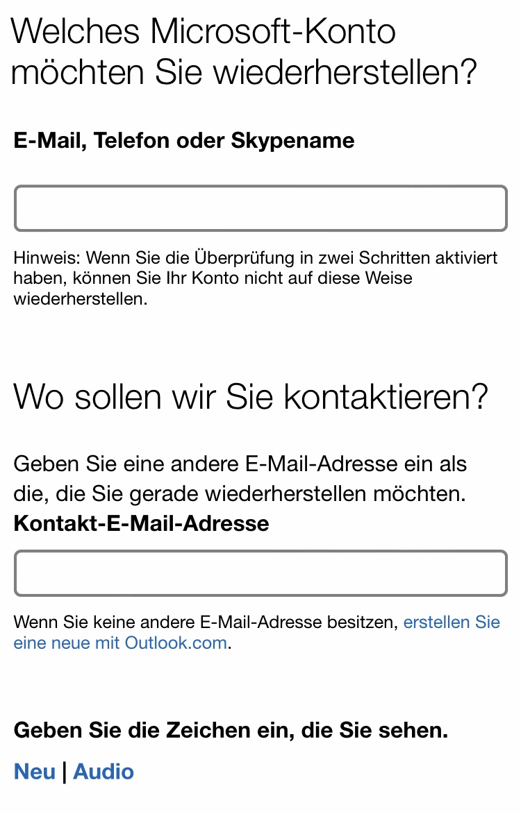Jetzt bin ich ausgesperrt und komme auch durch die Wiederherstellung nicht weiter, da zu wenige Informationen vorliegen, wie die Antwort-Mail meinte.