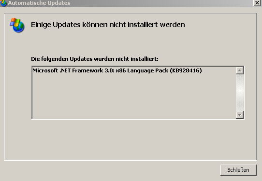 Auch der manuelle Donwload von "dotnetfx3langpackde" und die Installation klappte nicht.