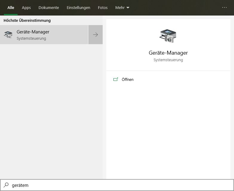 Ich muss bei mir sogar "gerätem" eingeben. Ich verwende den Geräte-Manager aber nur sehr selten.