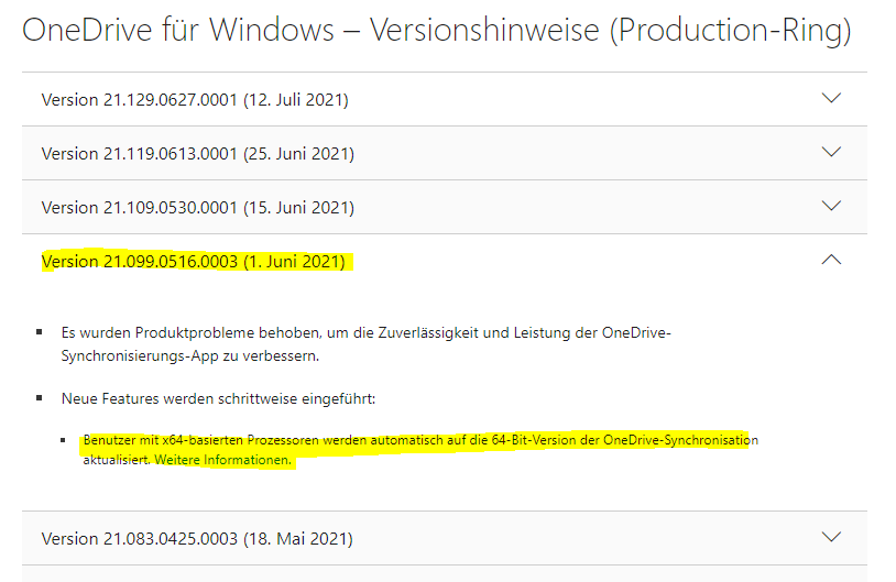 ...Kurz recherchiert: Bereits mit Client-Update V21.099.0516.0003 wurde über Windows-Update im Juni automatisch auf 64bit aktualisiert. 👍