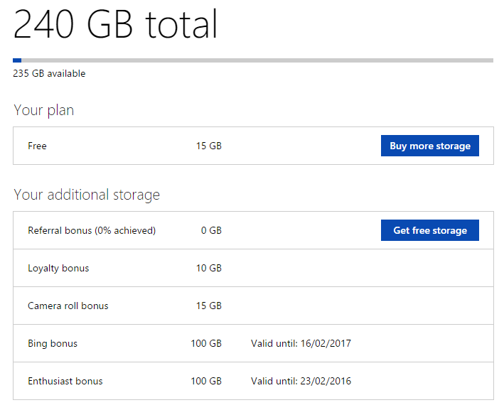 Den Loyalty Bonus kann man nicht mehr bekommen. Das ist die Differenz, die damals entstanden ist, als MS die 25 GB SkyDrive Speicher auf 10 GB OneDrive Speicher reduziert hat. Wer wollte konnte sich diese Differenz bei der Umstellung auf OneDrive gutschreiben lassen.und wofür gibts den loyalty bonus von einem Screenshot ein paar Posts weiter oben?