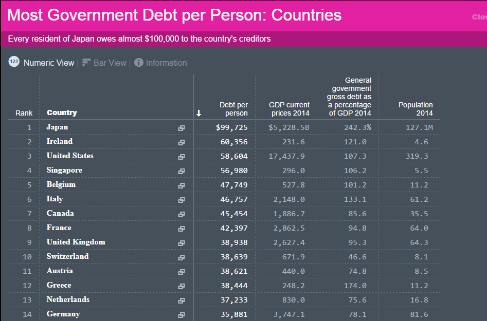 Du verstehst es einfach nicht...natürlich ist die Verschuldung der USA per Kopf größer, aber die USA ist gleichzeitig am meisten an seine eigenen Bürger verschuldet...klingelt es langsam bei dir? Dieser Zusammenhang ist elementar, wird aber nie in diesem Forum beachtet!
