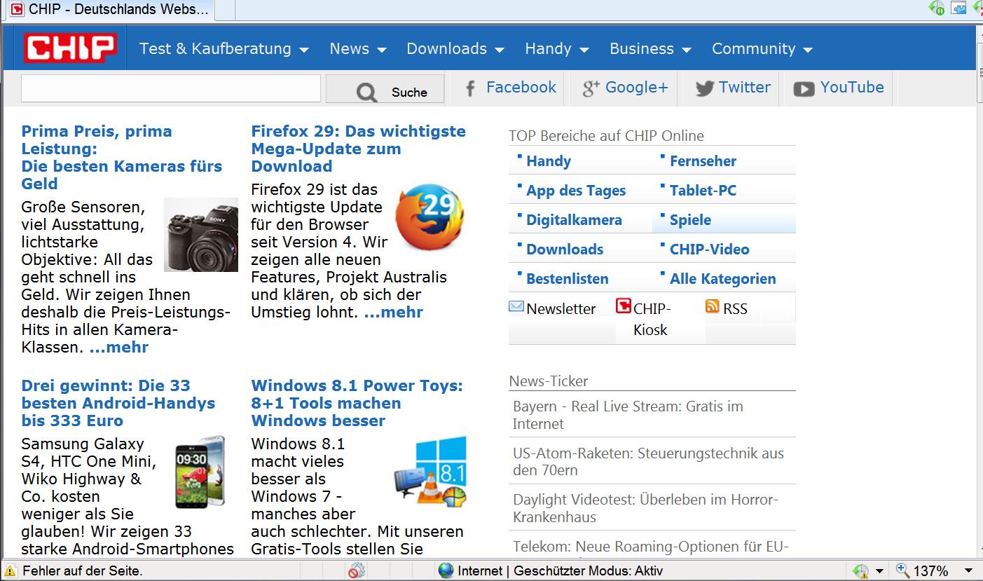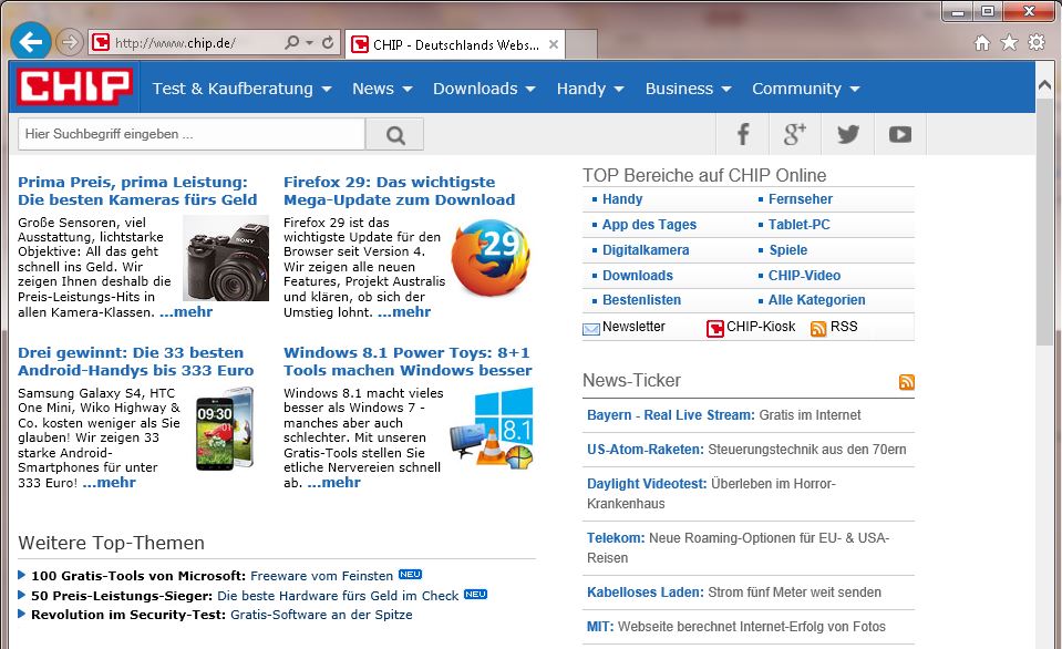 die Seite von Chip.de sieht bei mir dann so aus ohne leer Felder