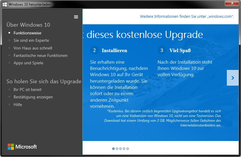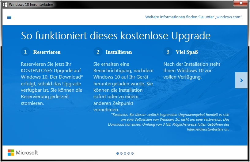 Microsoft hat den Veröffentlichungstermin für Windows 10 bekannt gegeben. Ab dem 29. Juli 2015 kann das System als Upgrade heruntergeladen oder auf neuen Rechnern von ausgewählten OEMs bezogen werden. Nutzer von Windows 7, Windows 8 und Windows 8.1 erhalten seit heute einen Hinweis auf das Upgrade in der Taskleiste.