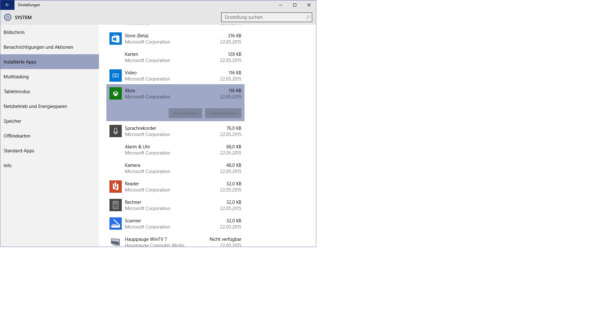 Hmm, zeig mir doch bitte einen screenshot, auf dem die X-Box App deinstalliert ist. Oder wo man sie deinstallieren kann. Ich zeig dir bis dahin einen, wo das nicht geht.