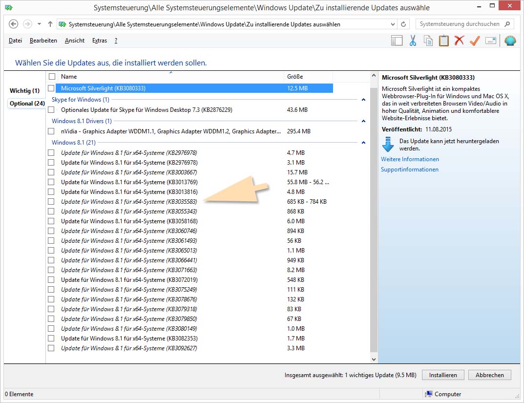 Im Übrigen ist das KB2952664 lediglich als