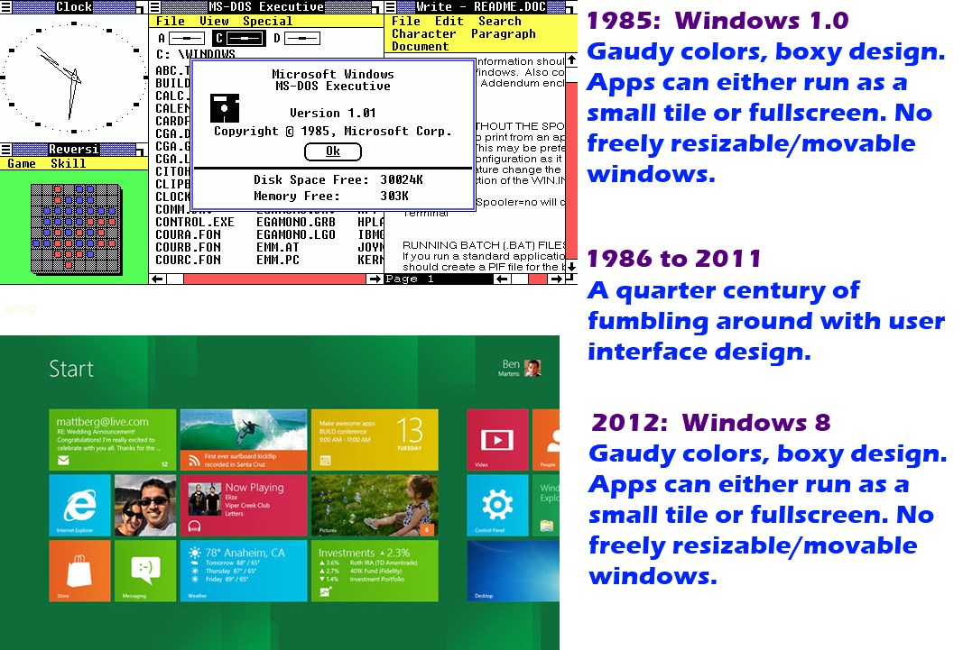 Als ob man bei Win 8 keine variablen Fenstergrößen hätte... Nochmal für dich: Der Desktop mit Taskleiste und Snap etc. ist noch da. Und die Farben kann man einstellen...