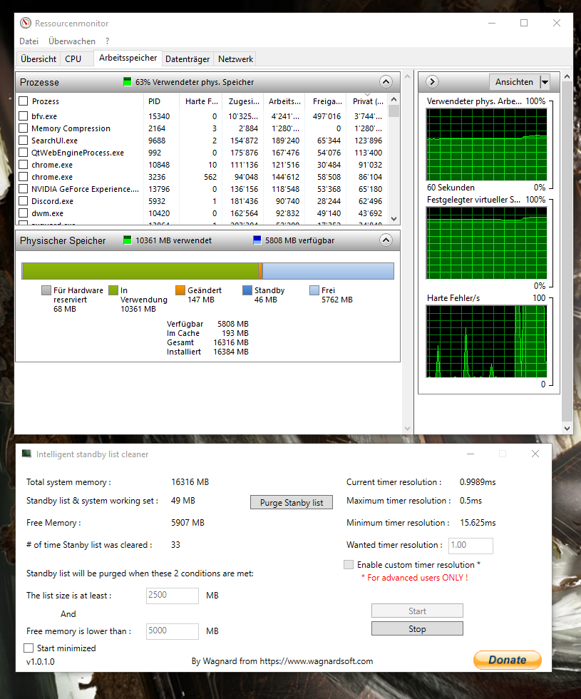 - Windows Intelligent Standby List Cleaner installiert