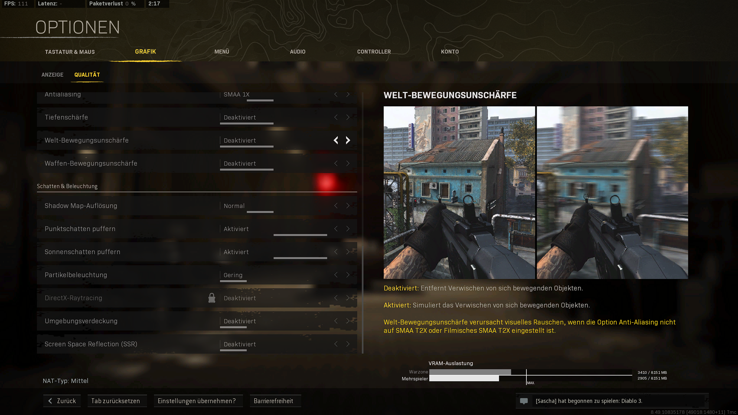 ich habe seit Warzone Release immer mal wieder Probleme mit dem Game. Zu Anfang hatte ich extremes Stuttering, bis ich einen Tipp auf Reddit fand, bei dem man im COD Modern Warfare Dokumenten Ordner den Wert der Video Memory ändern sollte. Das half bislang, doch seit der neuen Map habe ich hier und da doch wieder leichtes stottern. Das merke ich zum Beispiel wenn ich bei einer Waffe in den Scope gehe und es für eine Millisekunde hakt oder wenn ich testweise die Maus kontinuierlich von links nach rechts und zurück schwenke, es stottert dann doch manchmal leicht. Es ist nicht extrem wie es mal war, aber es nervt doch.... Mein AMD Treiber ist aktualisiert. Ich spiele in WQHD auf einem 27 Zoll Monitor mit Freesync. Das zu deaktivieren hat leider auch nichts gebracht. Ich habe sets über 100 FPS und keine drastischen Drops. Daran kann es also nicht liegen.