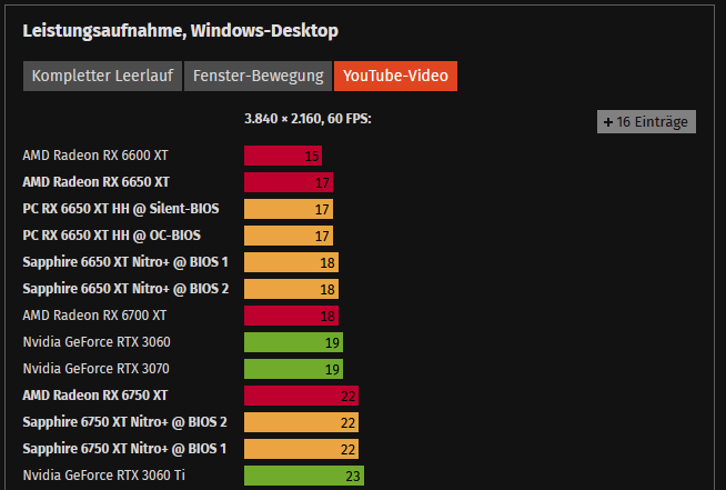 Danke Leute nicht beefen...ich hab im Moment nicht so die Zeit mir die exakten Details der Karten und Verbrauch der Karten durchzulesen. Wenn die Angaben wie sie Sunweb gepostet hat passen im Desktop Betrieb, dann tendiere zur AMD 6600XT. Damit sollte alles passen.