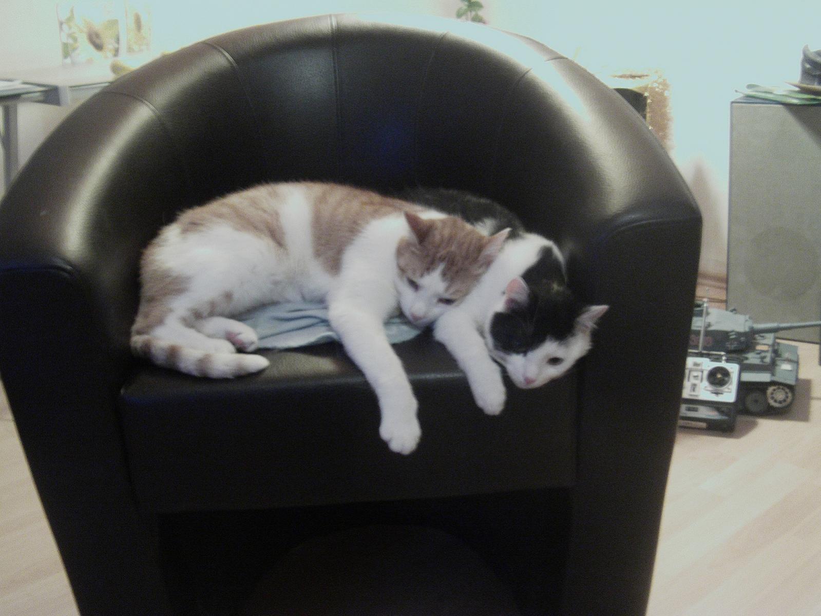 Nach einer guten Klopperei, erst mal fressen, dann Körperpflege und dann aneinander kuschelnd einpennen.