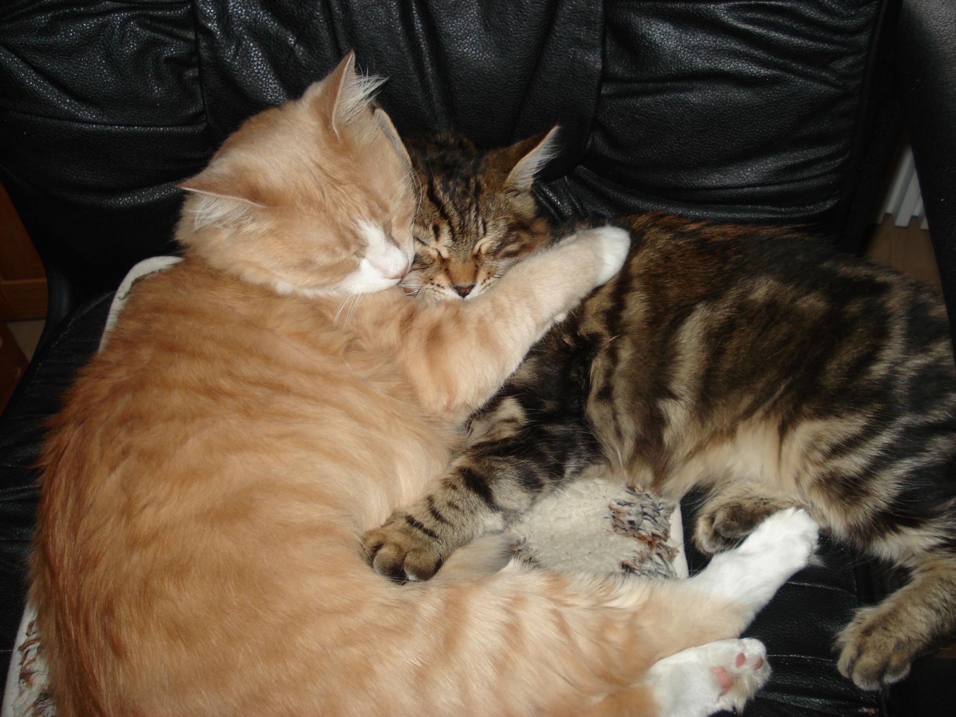 schönes Katerchen...Ich hab 2 Kater meine Freundin hat auch 2 Stück. Egal wo wir sind...die "Fusselrolle" muss immer mit weil wenn du das T-Shirt einmal auf´m Bett oderso liegen lässt dann kommt gleich jemand und legt sich drauf^^