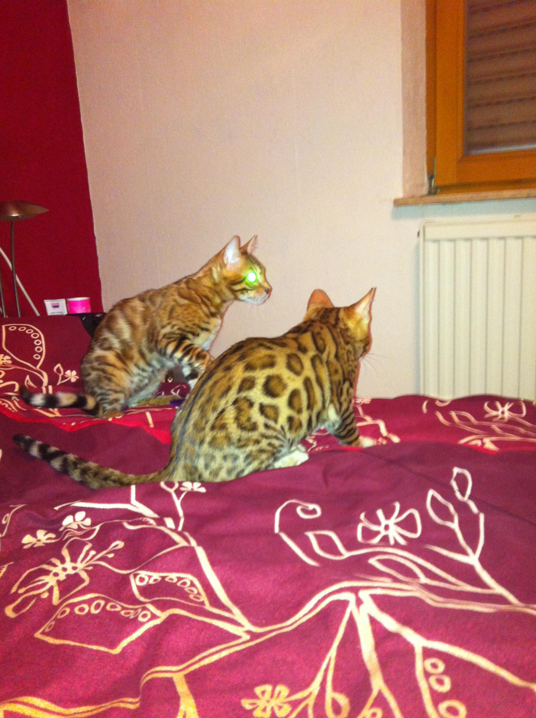 MrMorgan, geil, dass du Bengal Katzen hast. Leider sind die zu selten, als dass man die "umsonst" bekommt wie sonst so viele Katzen. Kater Jack, der mit meiner Exfrau ausgewandert ist gab es als kitten für Kosten für Futter und Tierarzt, meine kleine Ginny kam als Notfellchen ganz gratis *gg* Bei Bengals werde ich das Glück nicht haben, denn wenn ich bald arbeiten werde, brauche ich noch eine zweite Katze, damit die Kleine sich nicht langweilt, wenn sie den ganzen Tag alleine ist. Hätte ich die Kohle, würd ich mir auch eine Bengal-Katze besorgen