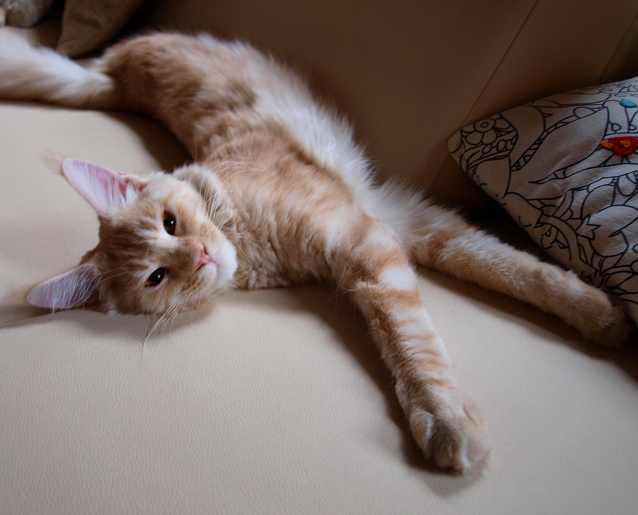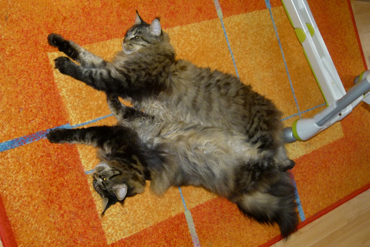 Maine Coons können aber ganz schön gross werden, wobei ich denke dass unserer nicht so gross wie diese beiden werden wird: http://www.youtube.com/watch?v=L86S6-qDzyQ
