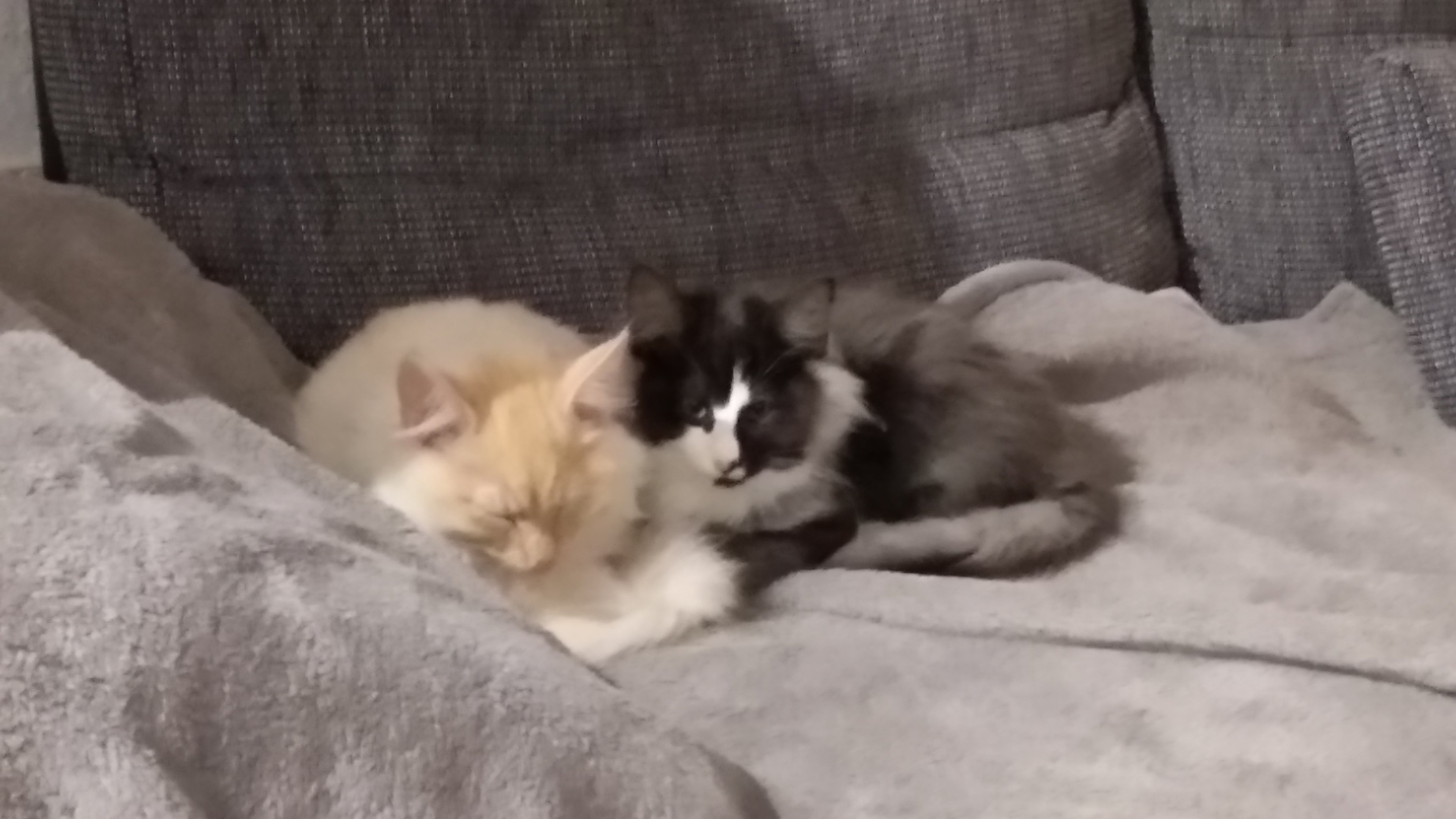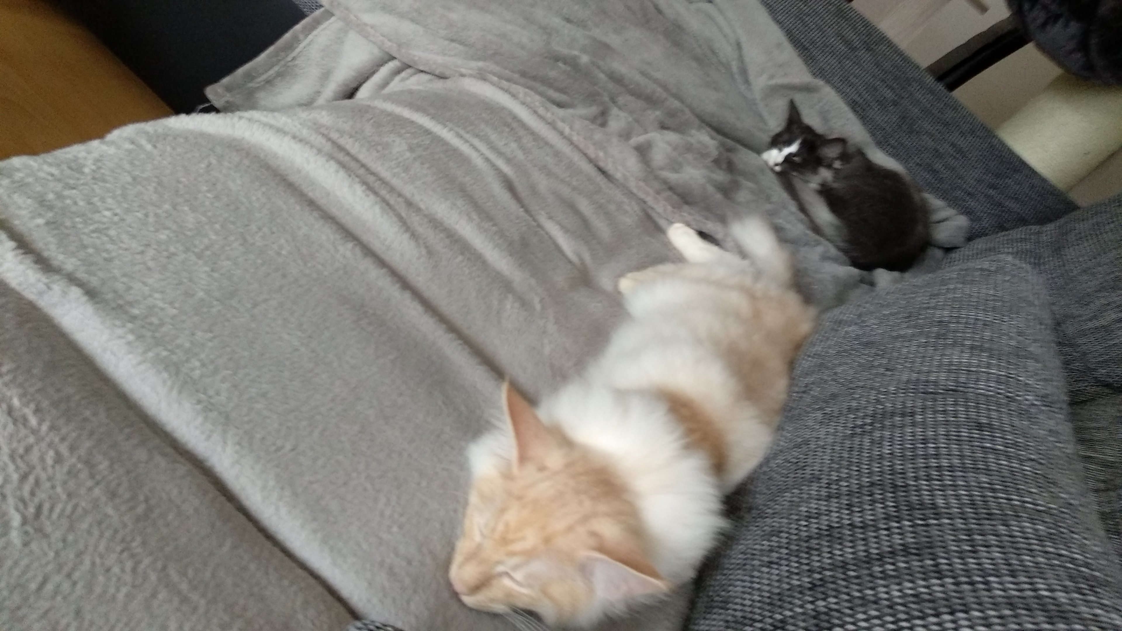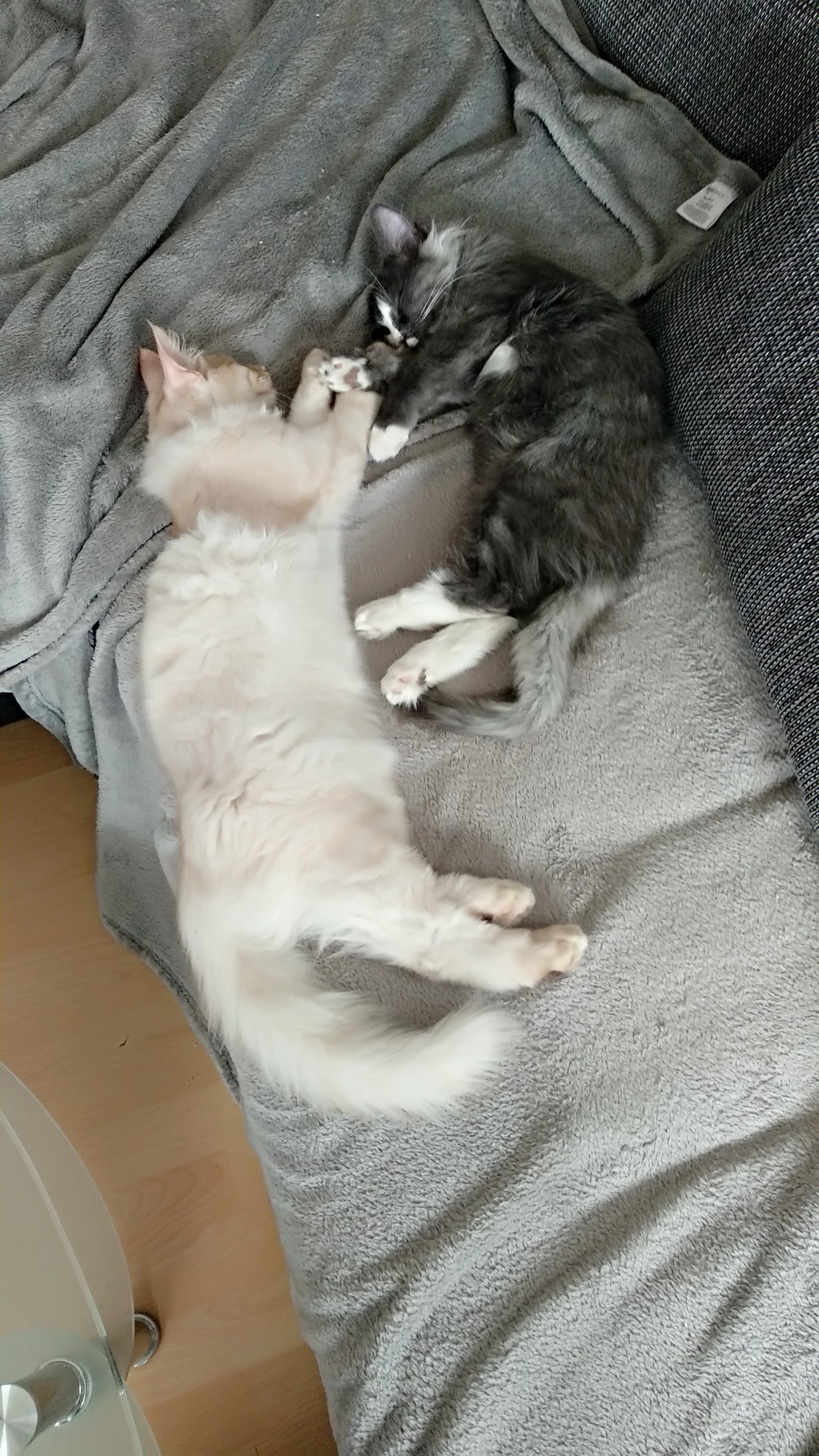 Unser Ragdoll Kater hat sogar Ersatzmutter für einen anderen Kater gespielt. Das sind die Beiden, die auf dem einen Bild zusammen liegen.