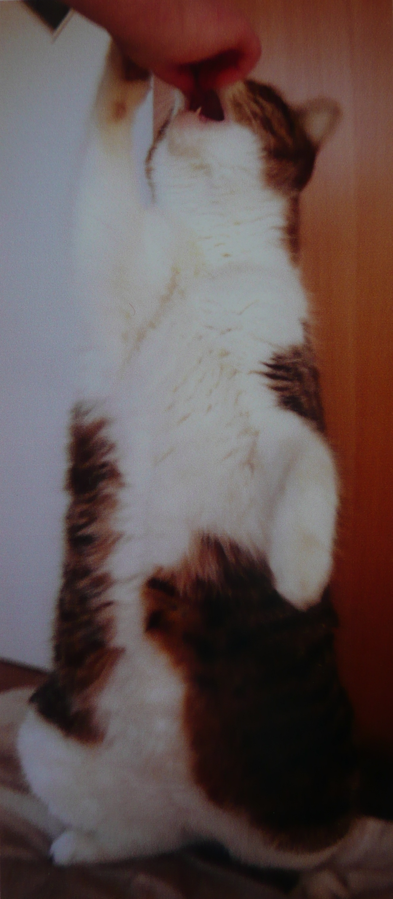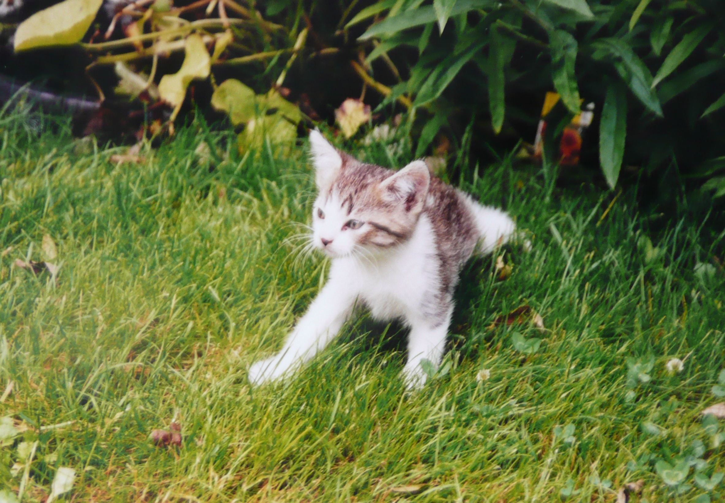 war ganz lustig als wir den damals ausgesucht hatten. er kam von nem bauernhof hier in der nähe, war ein wurf mit 4 katzen. wir kamen in den schuppen in dem die waren -> drei befellte blitze verschwanden unter irgendwelchen geräten, er blieb stehen und fauchte uns an -> "den nehmen wir"