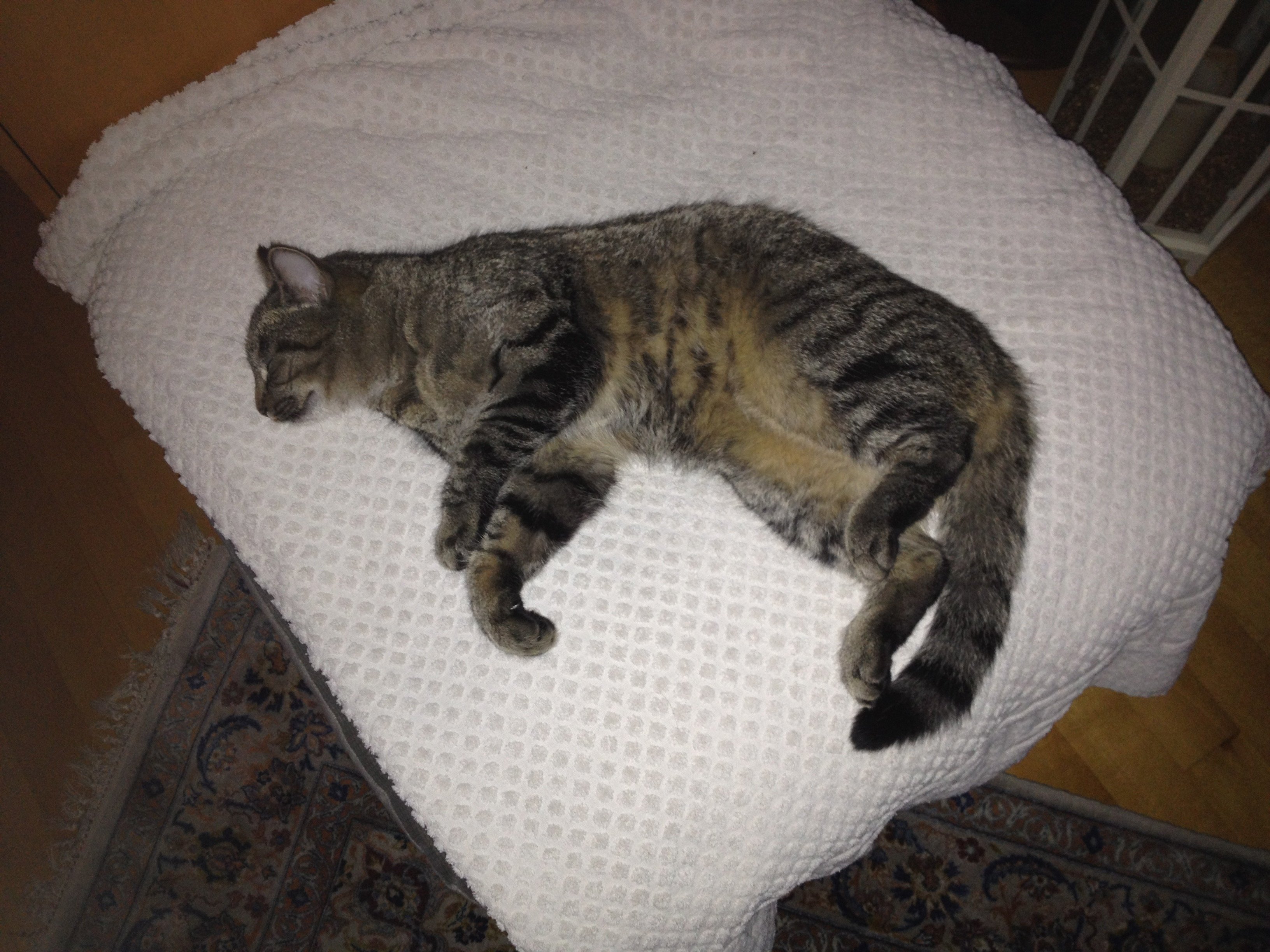 Madame weiß ganz genau, auf welcher Decke sie eigentlich nicht schlafen soll, aber wenn ich die so rumliegen lasse, bin ich auch selbst dran schuld.