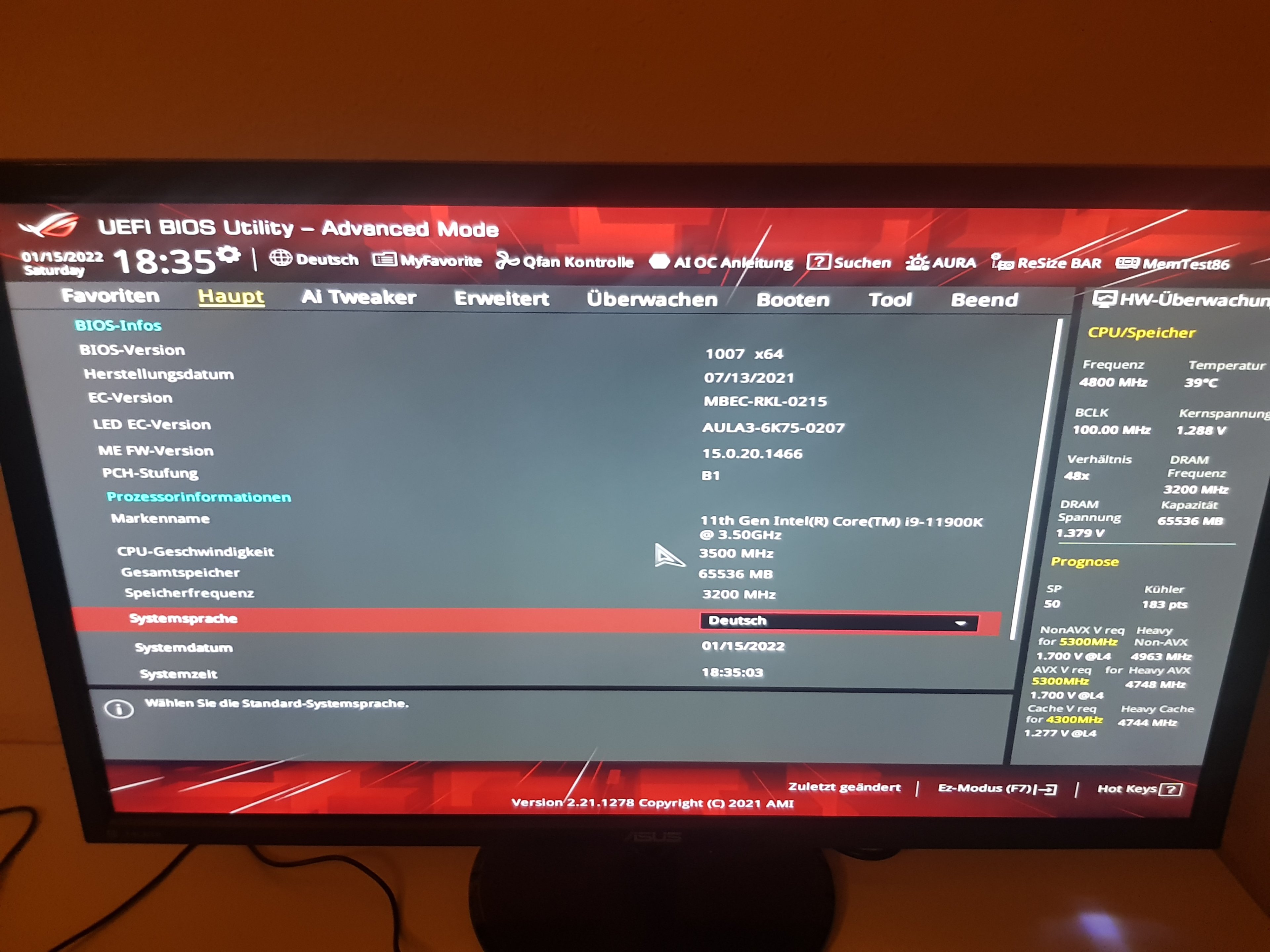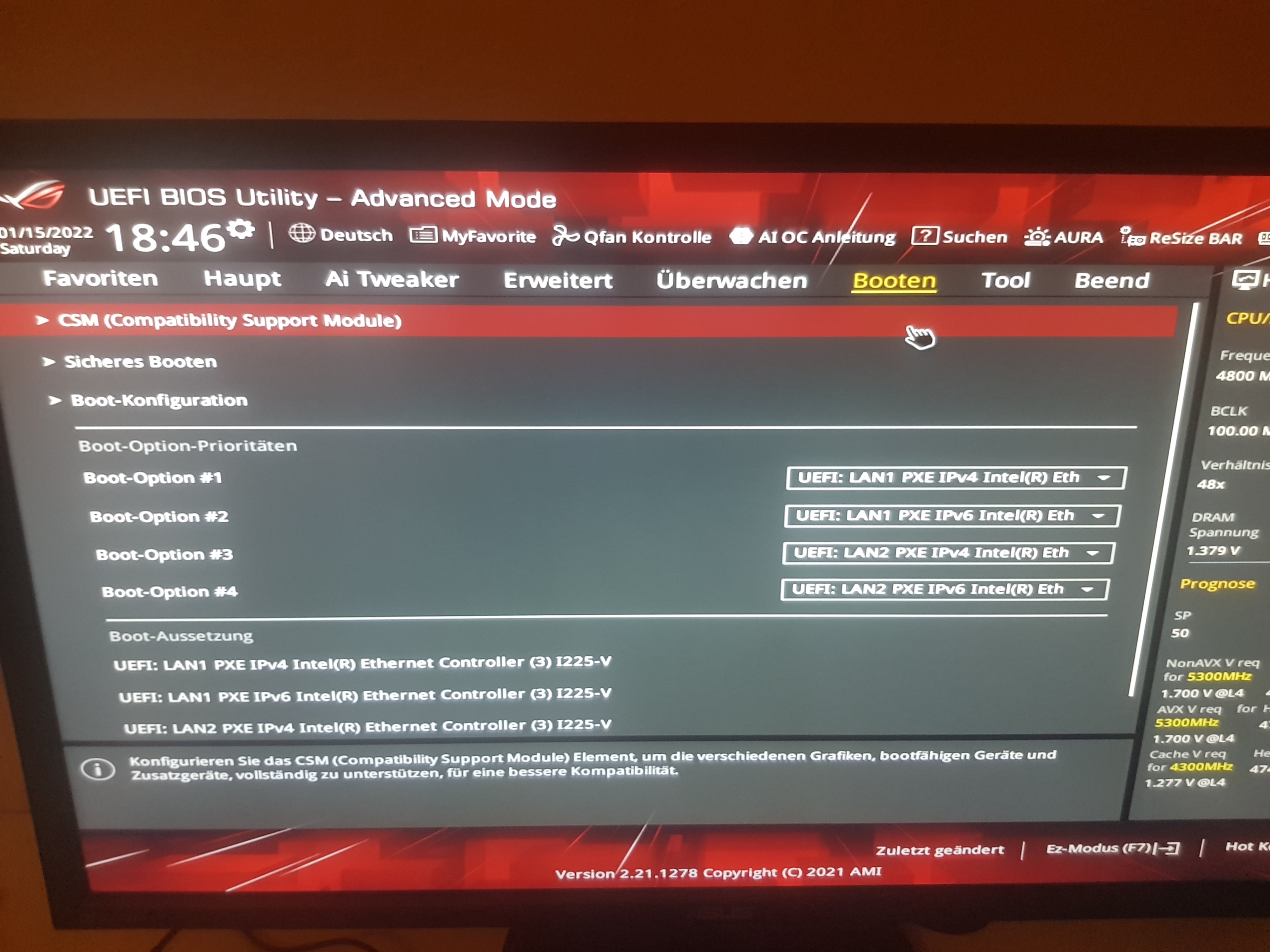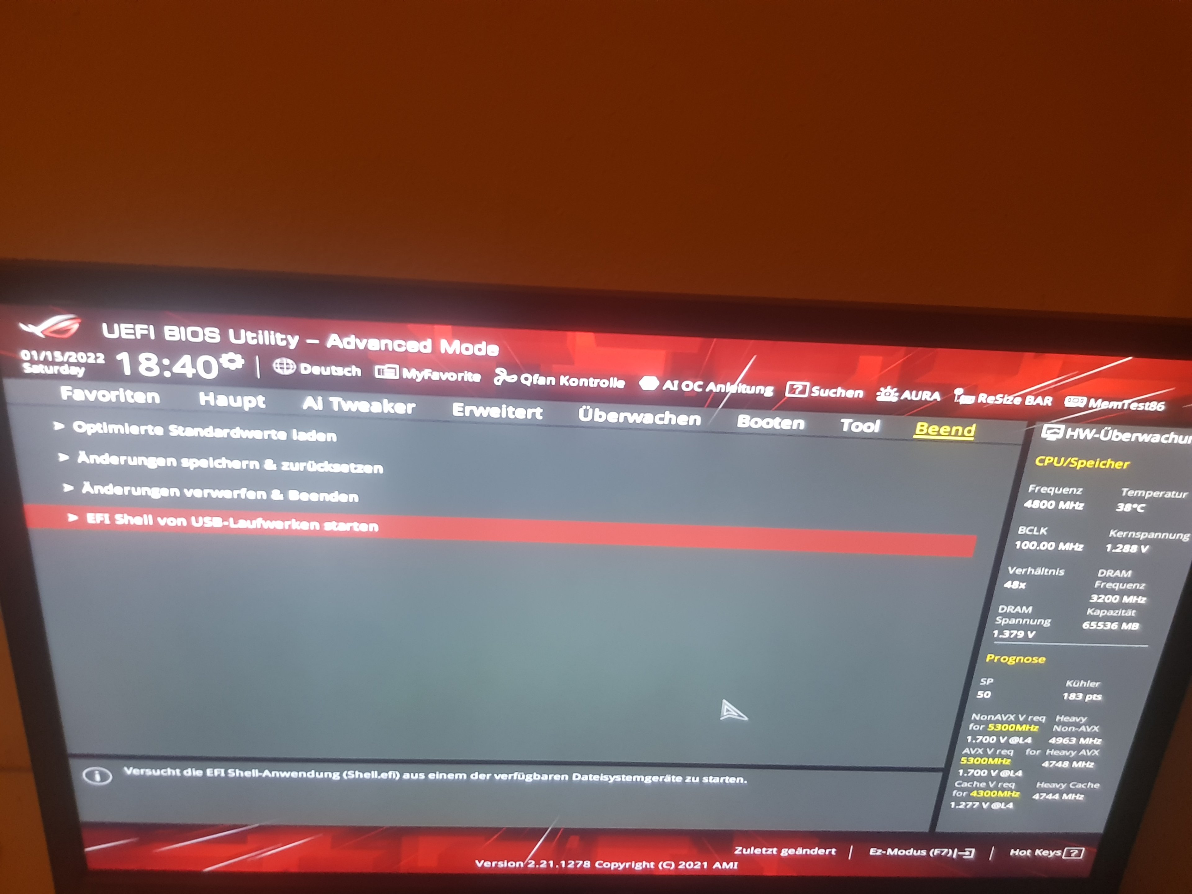 Das zeugt er mir an. Danach wenn ich bisschen rum klicke geht er nur in den Bios
