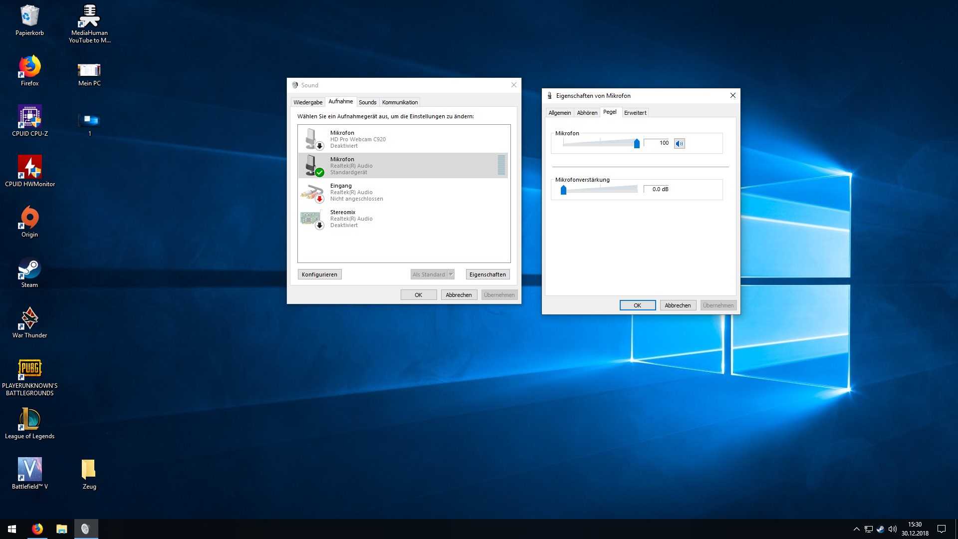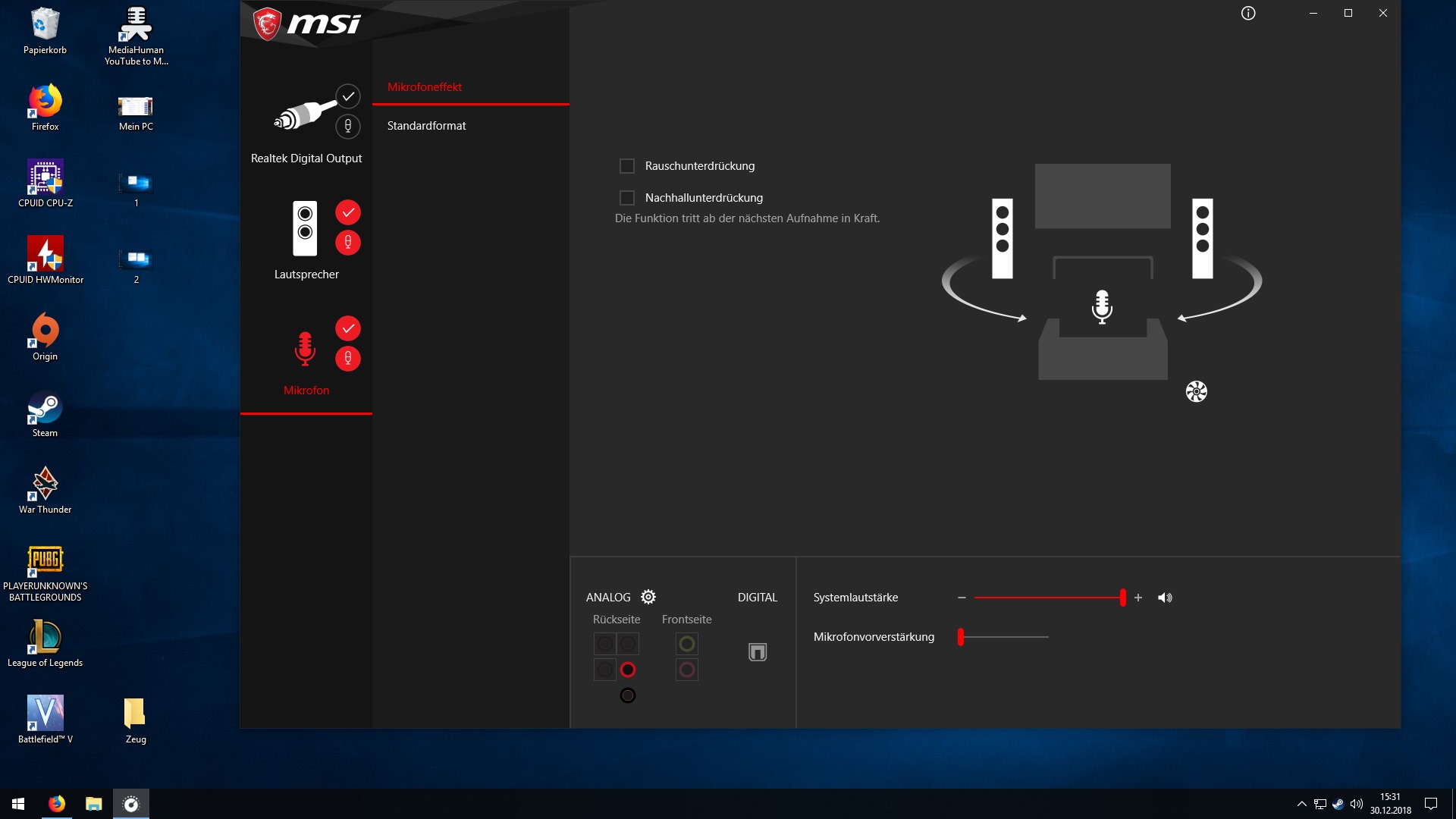 -In den Realtek Einstellungen ohne Erfolg rumprobiert.