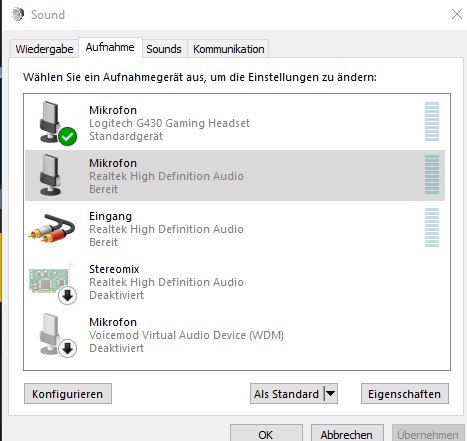 Einzig, wenn ich Gespräche über Discord oder TS führe, reagiert mein Mikro zwar, aber man hört mich nicht.