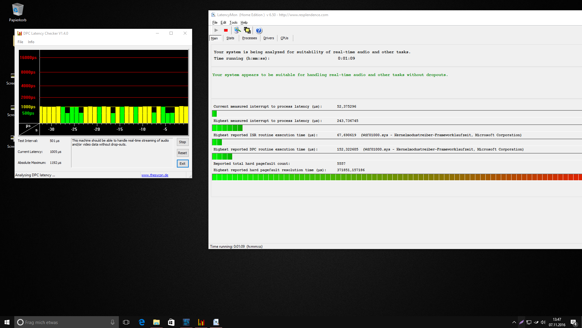DPC Latency Test mit: (DPC Latency Checker & Latencymon)