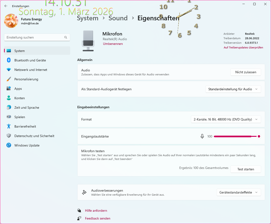 Oder gib uns mal mehr Infos darüber, was das für ein Mikrofon ist und wie das angeschlossen und konfiguriert ist. Ein paar Screenshots von den Software Settings wären auch nicht fehl am Platz.