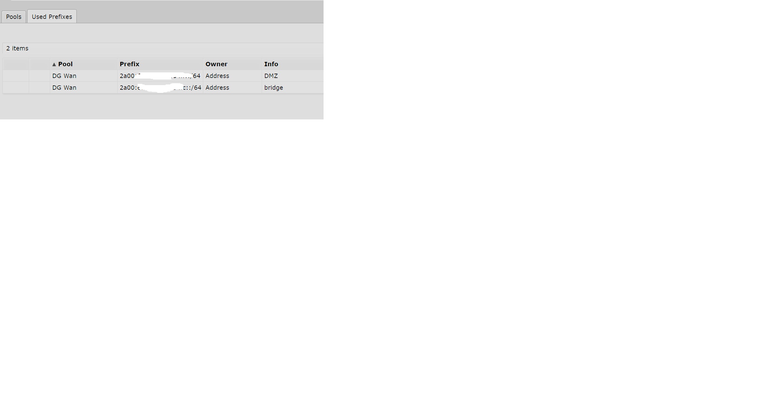 Naja brauche ja nicht mehrere Präfixe, hab halt dem DMZ Vlan gesagt, er soll vom vorhandenen Provider Präfix , was das normale Vlan bekommt, abgreifen.
