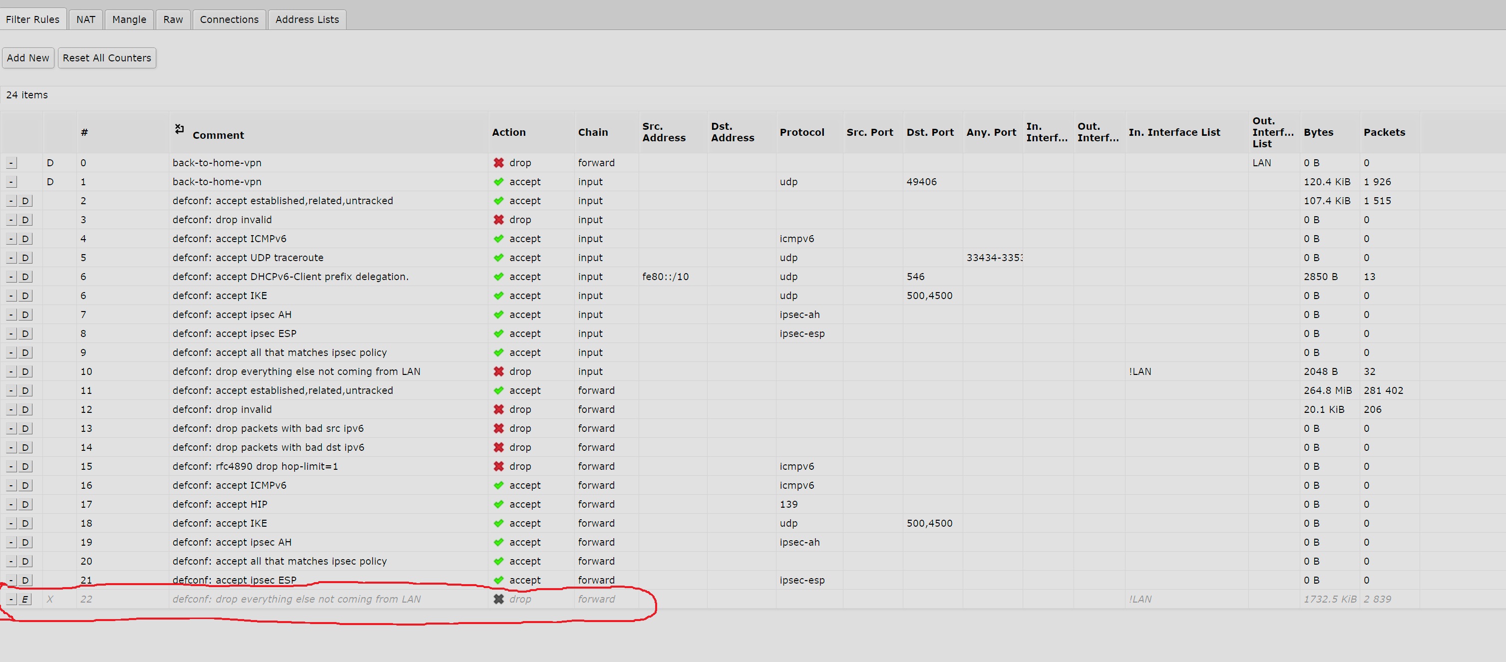 Beachte, die neue Regel muss vor der Drop Regel angeordnet sein.