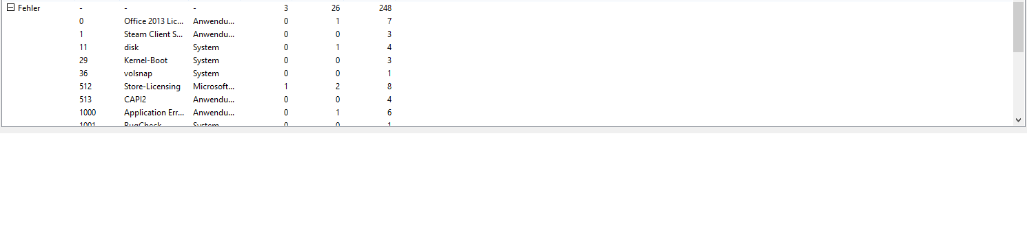 Das sind die Fehlermeldung der Ergebnisanzeige