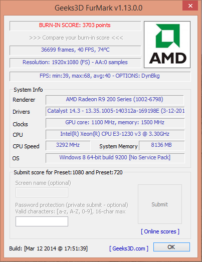 Das ist das Ergebnis vom 15minütigen FurMark Test den ich eben gemacht habe. Kann man da was erkennen?