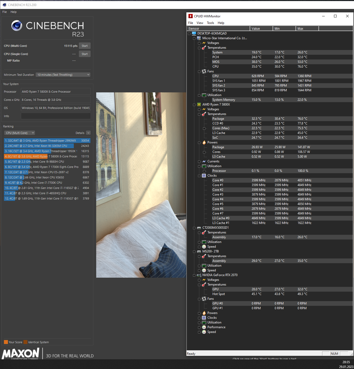 Was jedoch sofort auffällt ist, dass die CPU wesentlich einfacher zu kühlen ist als die alte Version des 5800X. Speziell dieses Modell war bisher heikel, da sich seine 105 W TDP bzw. 143 W PPT neben dem IO-Die auf nur ein Compute-Die konzentriert. Beim 5900X zum Beispiel, der in der gleichen TDP-Klasse eingestuft ist, verteilt sich die Wärmeabgabe auf zwei Compute-Dies. Entsprechend hitzköpfig war der 5800X bisher unterwegs. Ein im August 2021 von mir verbautes Exemplar war mit einem Budget-Kühler nicht zu bändigen, Lastspitzen führten umgehend dazu, dass die Die-Temperatur auf über 90 °C empor schoss, sodass ich einen Scythe Mugen 5 verbauen musste, um unter 90 °C CPU-Temperatur zu bleiben. Mit dem B2-Stepping hingegen läuft die CPU mit Prime95 bei 85 °C in der Spitze, obwohl nur ein vergleichsweise günstiger Arctic Freezer 34 CO verbaut ist. Dabei ist es nicht so, dass er sein PPT-Limit nicht ausschöpft. Knapp 140 W stehen auch hier auf der Uhr:
