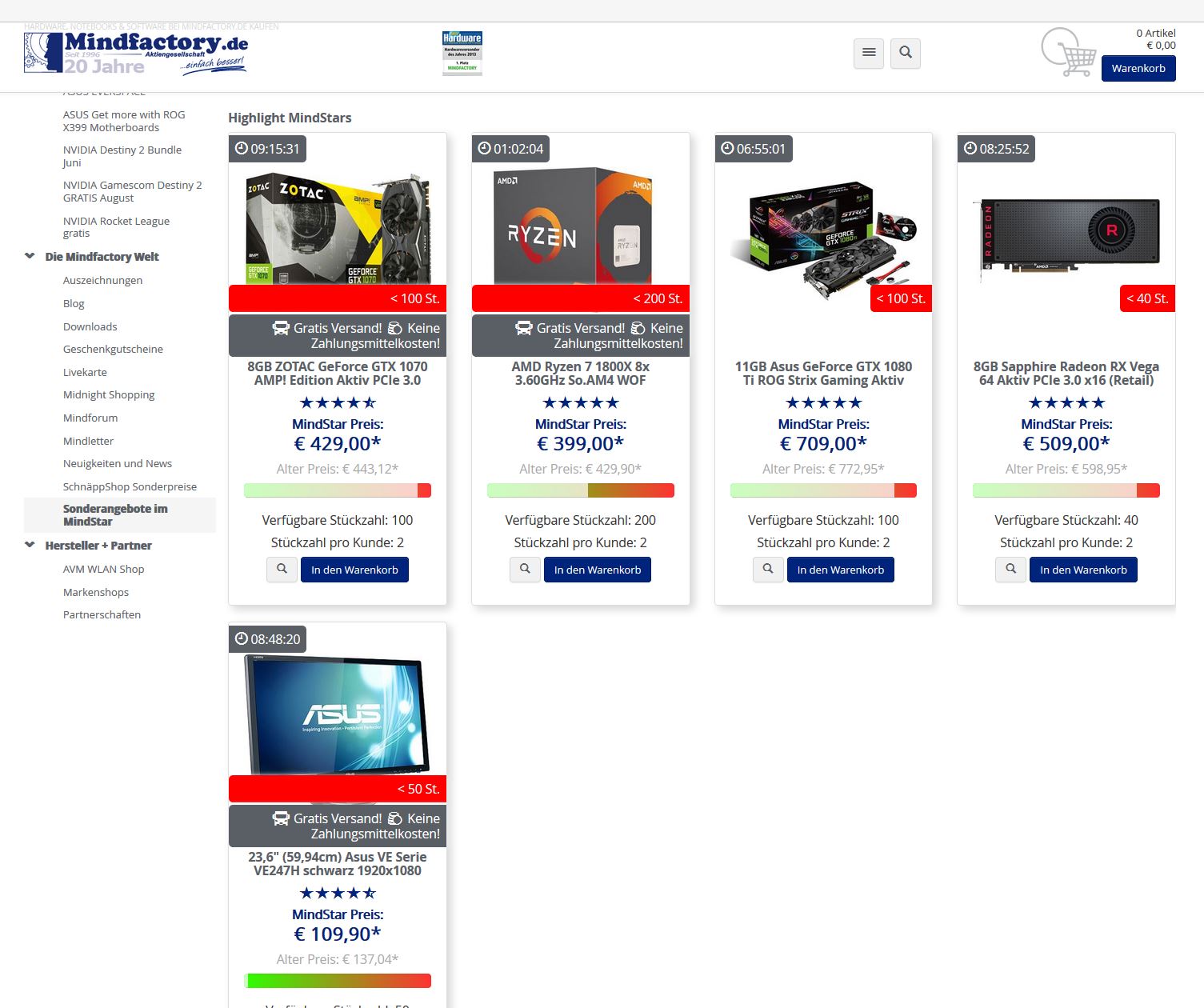 kann es sein, dass die Mindstars von Mindfactory nicht mehr wechseln? Bei mir wird das ganze Wochenende über schon immer die gleichen Angebote angezeigt. Liegt das irgendwie an einem lokalen Problem oder stellt Mindfarctory das Angebot ein?