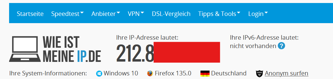 Meine öffentliche IP liegt im 200er Bereich und wird sowohl an der Fritzbox, als auch unter wieistmeineip gleich angezeigt.