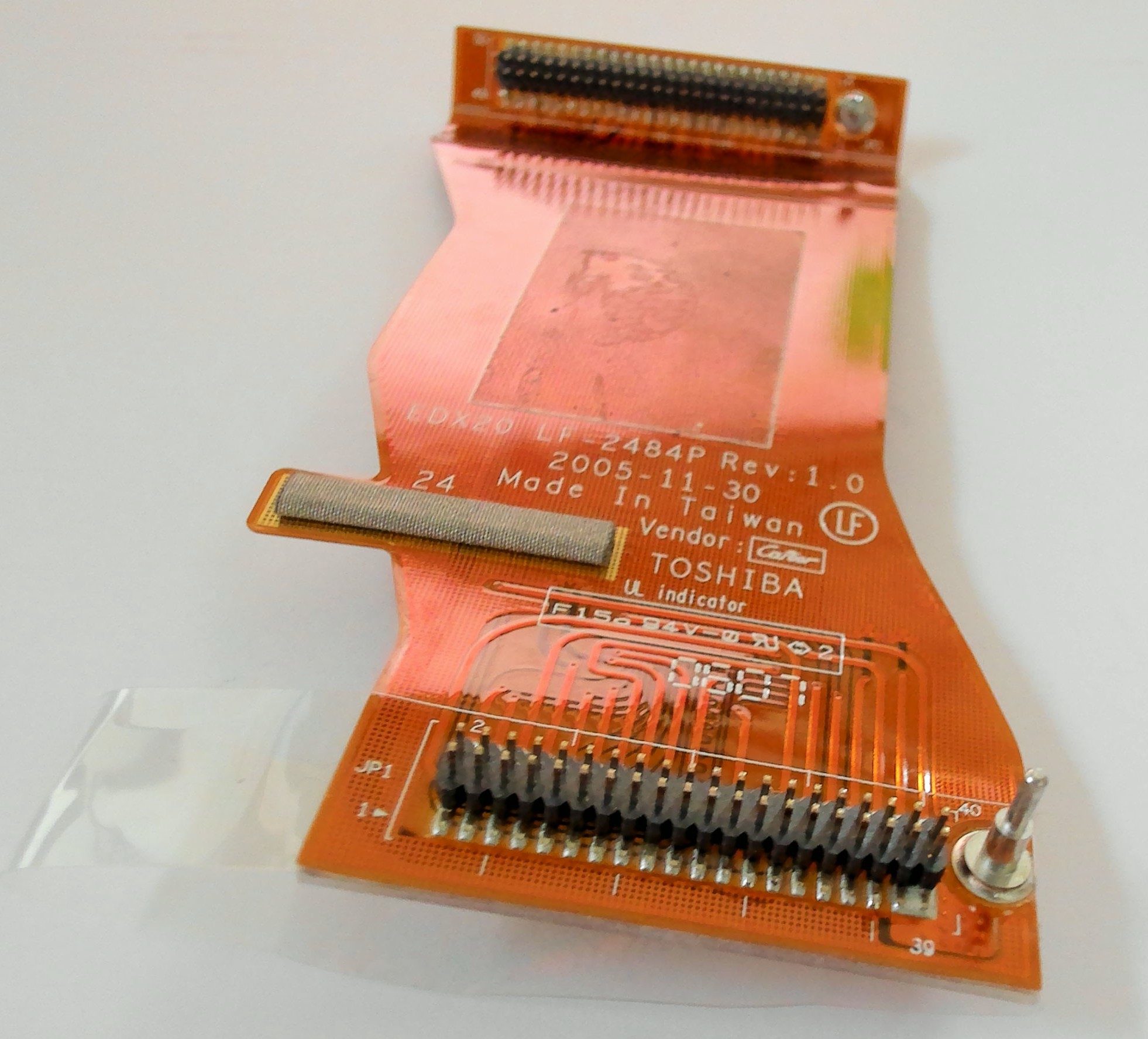 Bild 1 ist die FP mit einer Flexverbindung, die 50 Pins der Platte auf 40 Pins umleitet; Bild 2 das gleiche, auseinandergenommen. Bild 3 zeigt die Buchse der FP und Bild 4 den 40-poligen Pin der Umleitung.