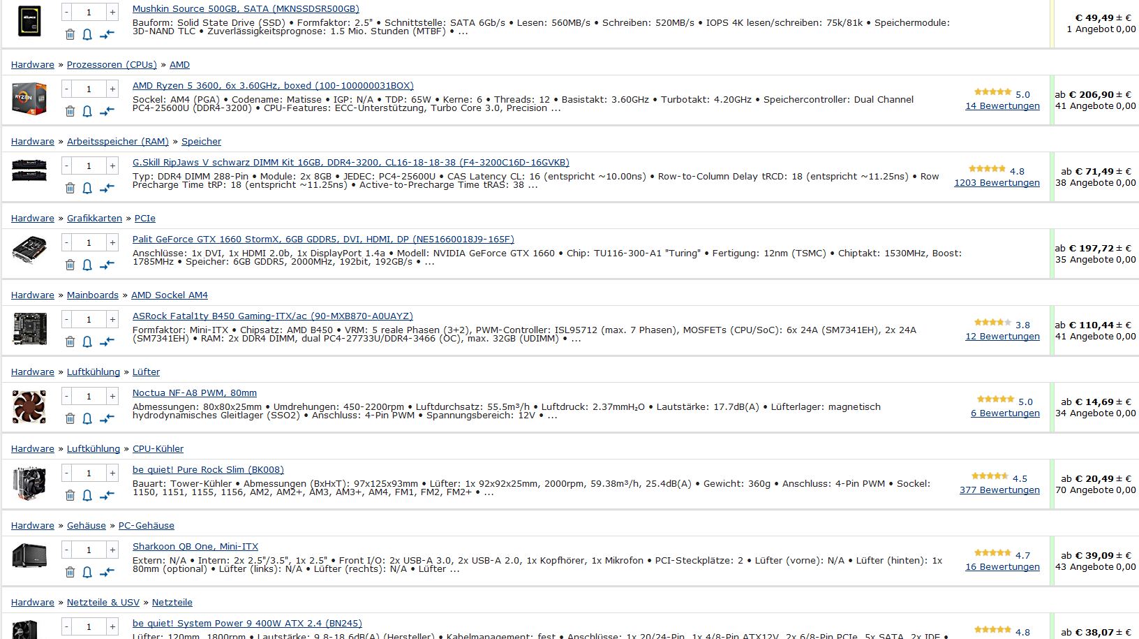 Ich habe meinen Build nochmal stark überarbeitet und ein neues Gehäuse ausgesucht. So komme ich nun doch auf 750 €. Wäre super wenn jemand nochmal was dazu sagen könnte.