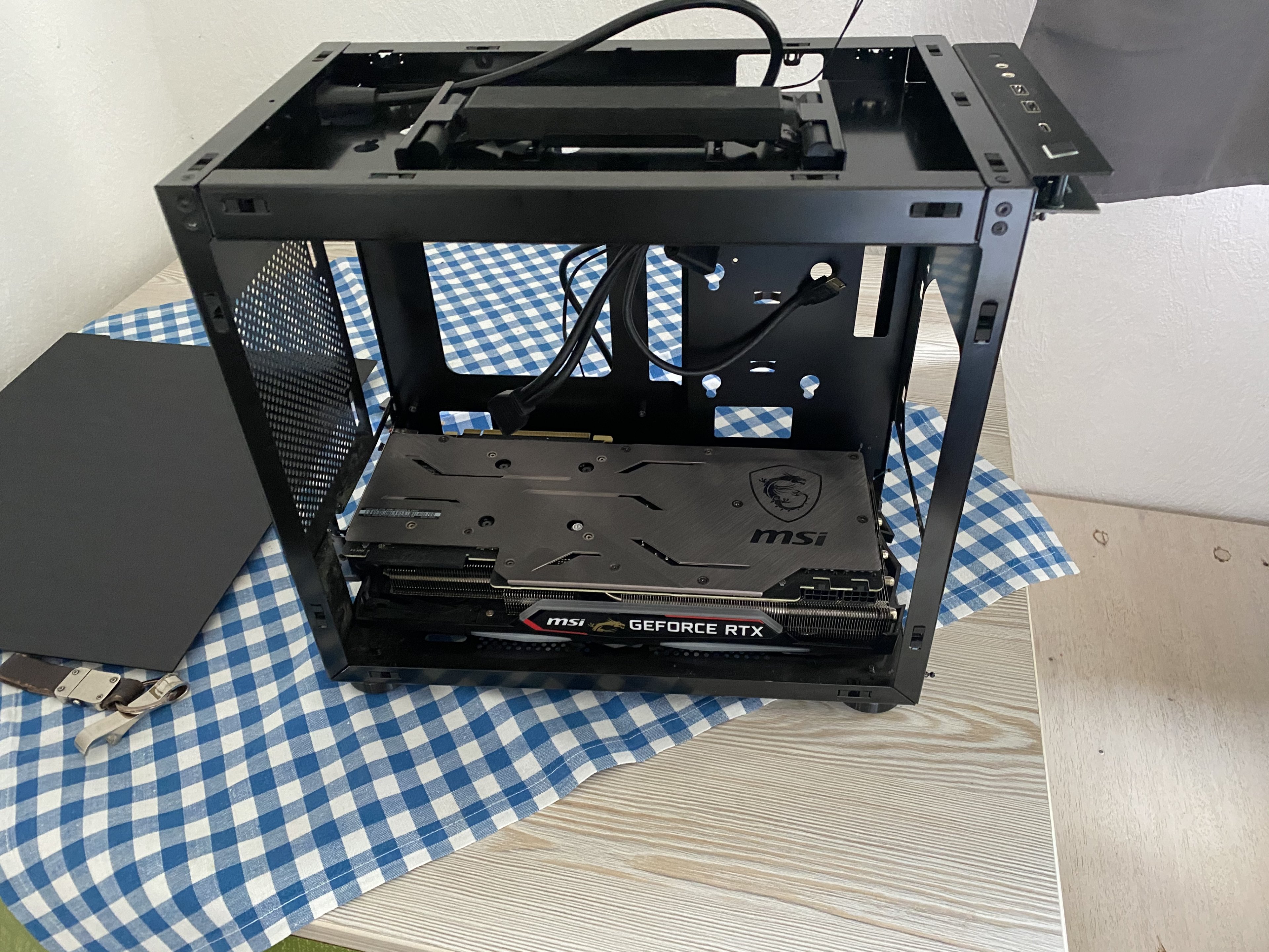 Habe als erstes das mainboard eingebaut mit RAM ,dann den Kühler draufgesetzt , dann die m2 Extension Card vom Board drauf gesetzt. Netzteil eingebaut extensions stehen als nächstes auf dem Plan sowie eine neue Frontplattr , falls wer ne Idee hat wo ich die herbekomme und dann die Ssds mit doppelseitigen Klebeband aufeinander geklebt und die Samsung nach vorn. Und zu guter letzt die Grafikkarte.