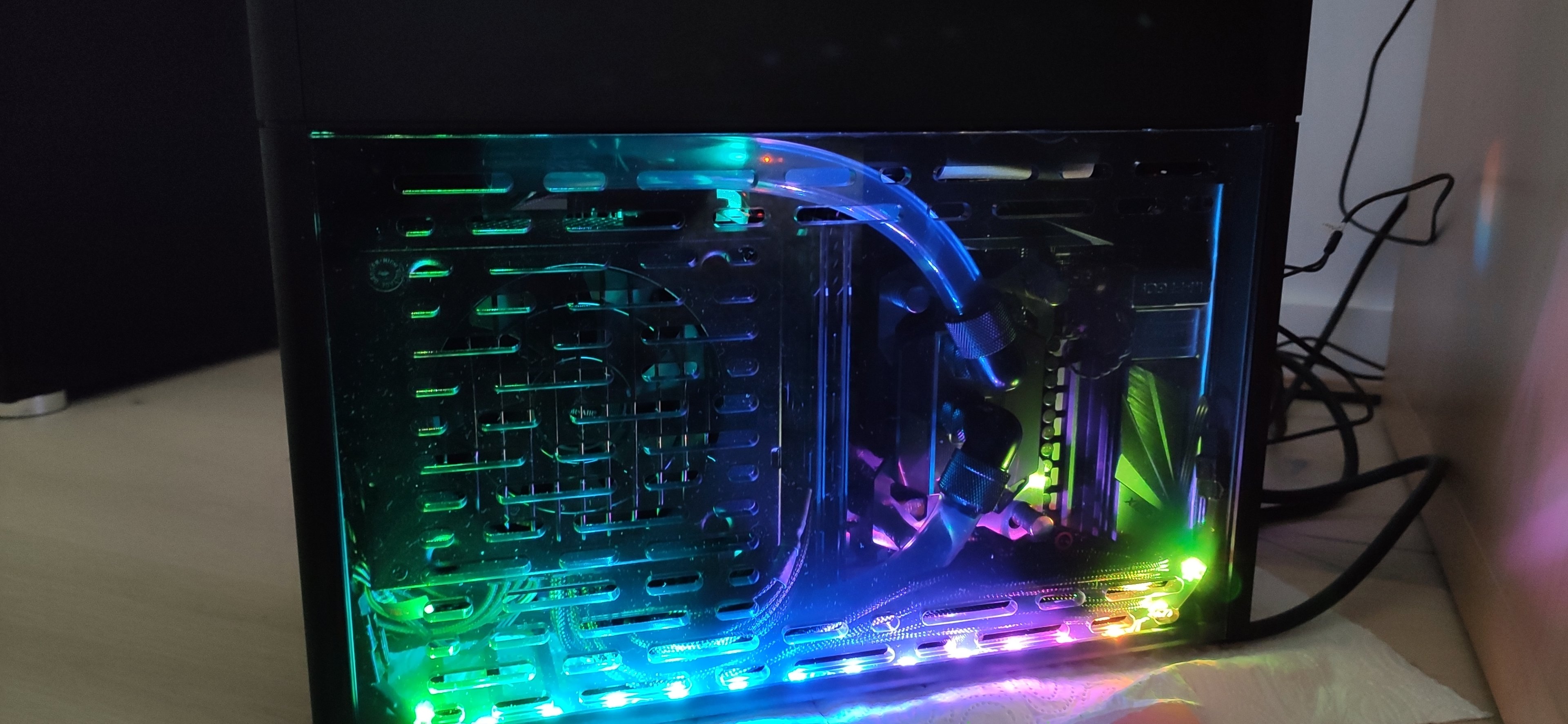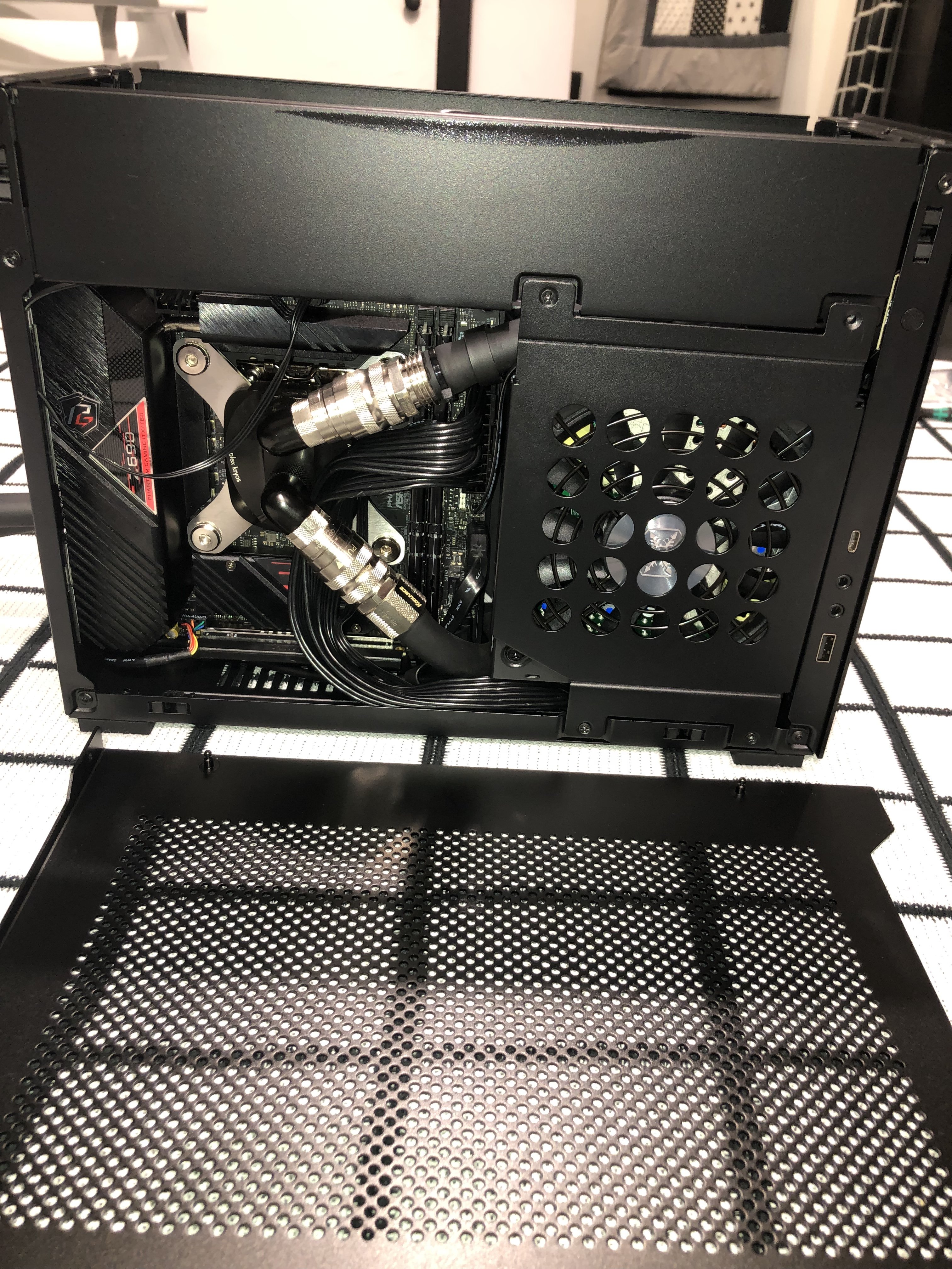 Die meisten sparen auch die Front I/O (die bei mir vorhanden ist), weil sie einen unteren Radiator nehmen der zu lang ist, einen zu finden der ebenfalls auch noch kompatible ist mit dem ASUS ROG Crosshair VIII Impact Mini-DTX in dem Gehäuse war nicht leicht.